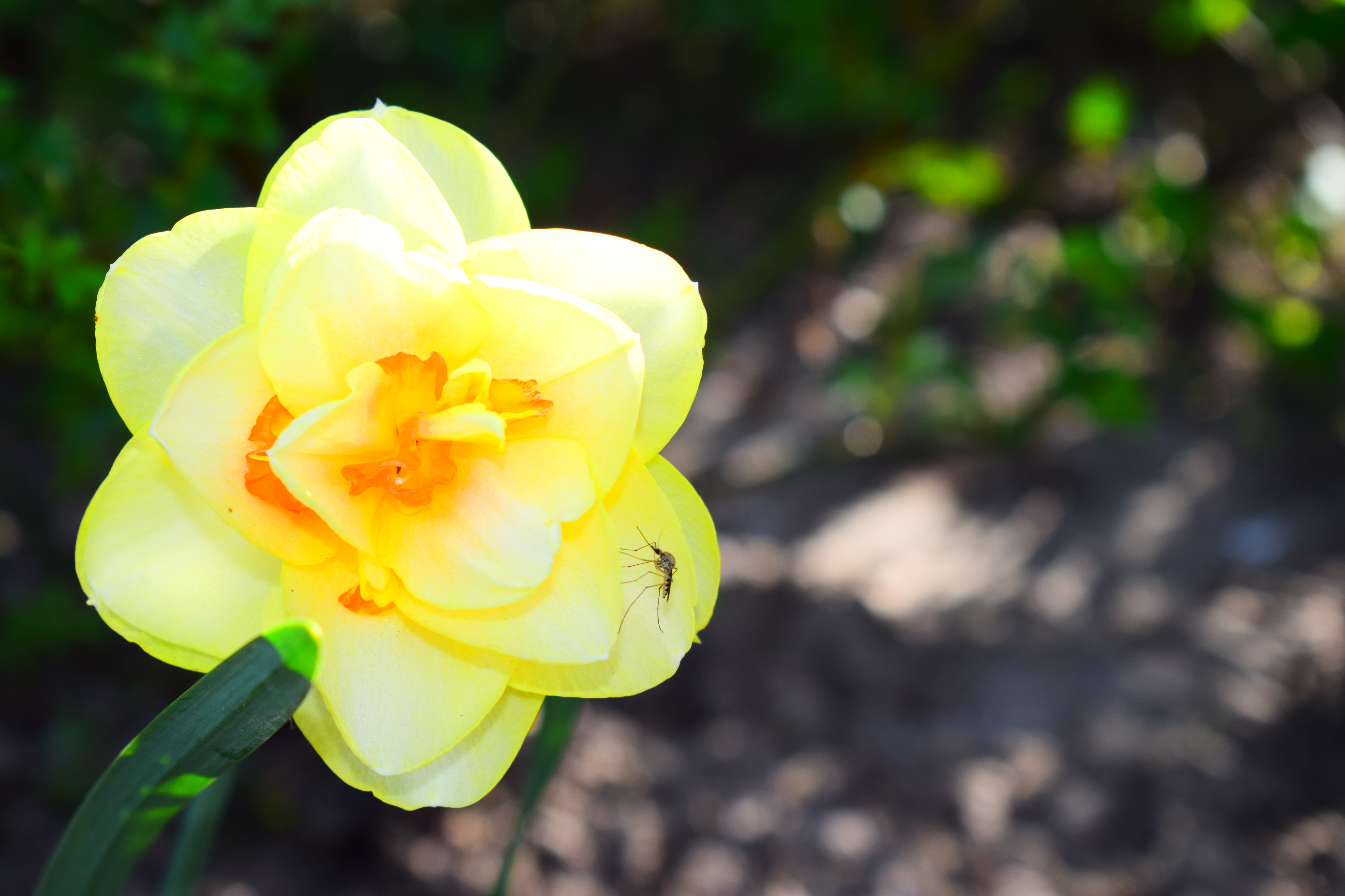 Неплохой кадр. Выбрали красивый и яркий цветок. Параметры подобраны корректно, что позволило добиться неплохой резкости и качества снимка. Комар добавляет деталей снимку, и заметно его оживляет.