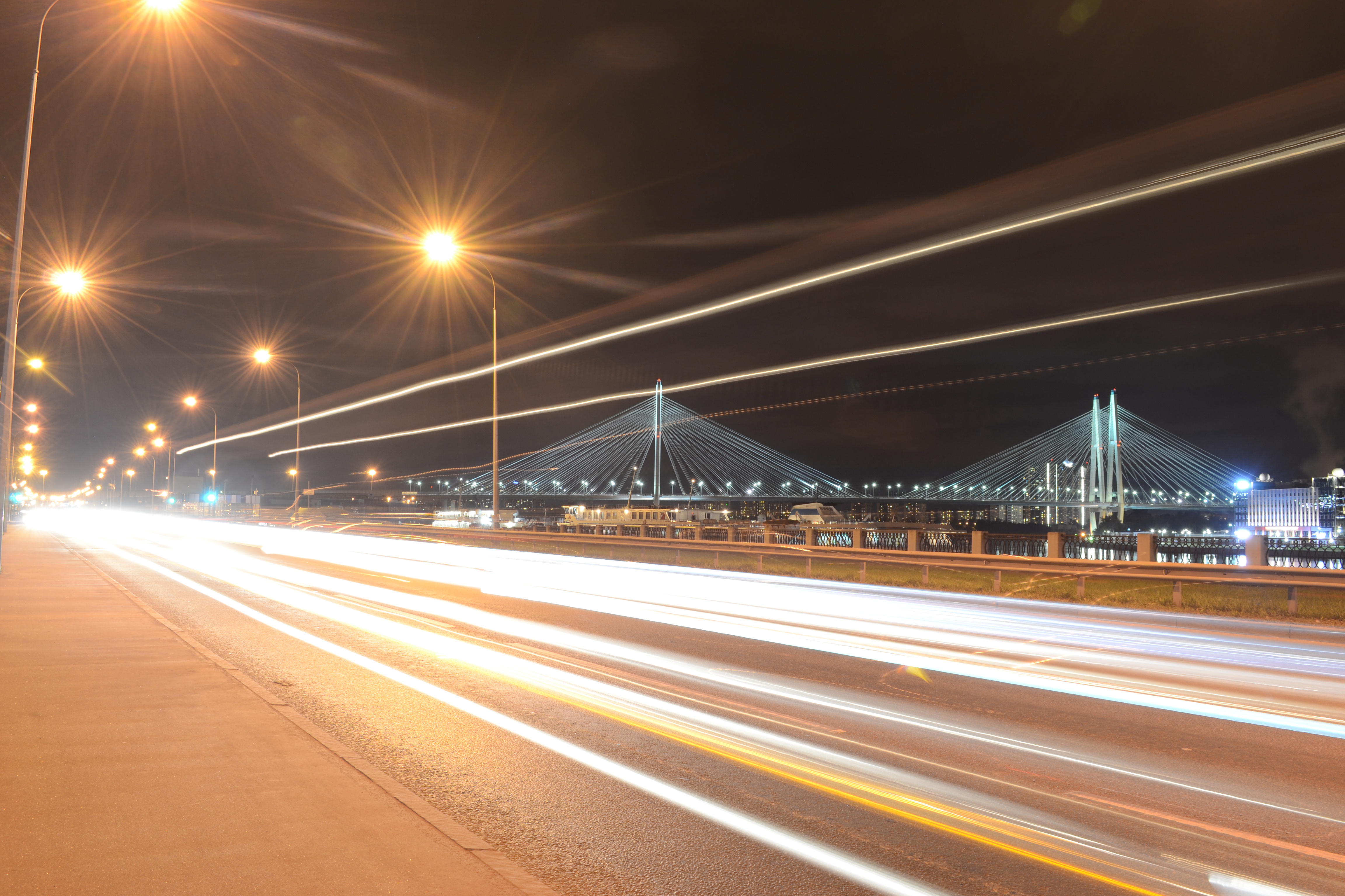 Хотелось сделать снимок многоплановым. Чтобы при этом чувствовалась динамика. Долго не мог выбрать, какой кадр отправлять, но выбрал этот. Жалею, что не удалось "поймать" большегрузы с разноцветной оптикой на крыше. Они рисовали очень интересные линии.