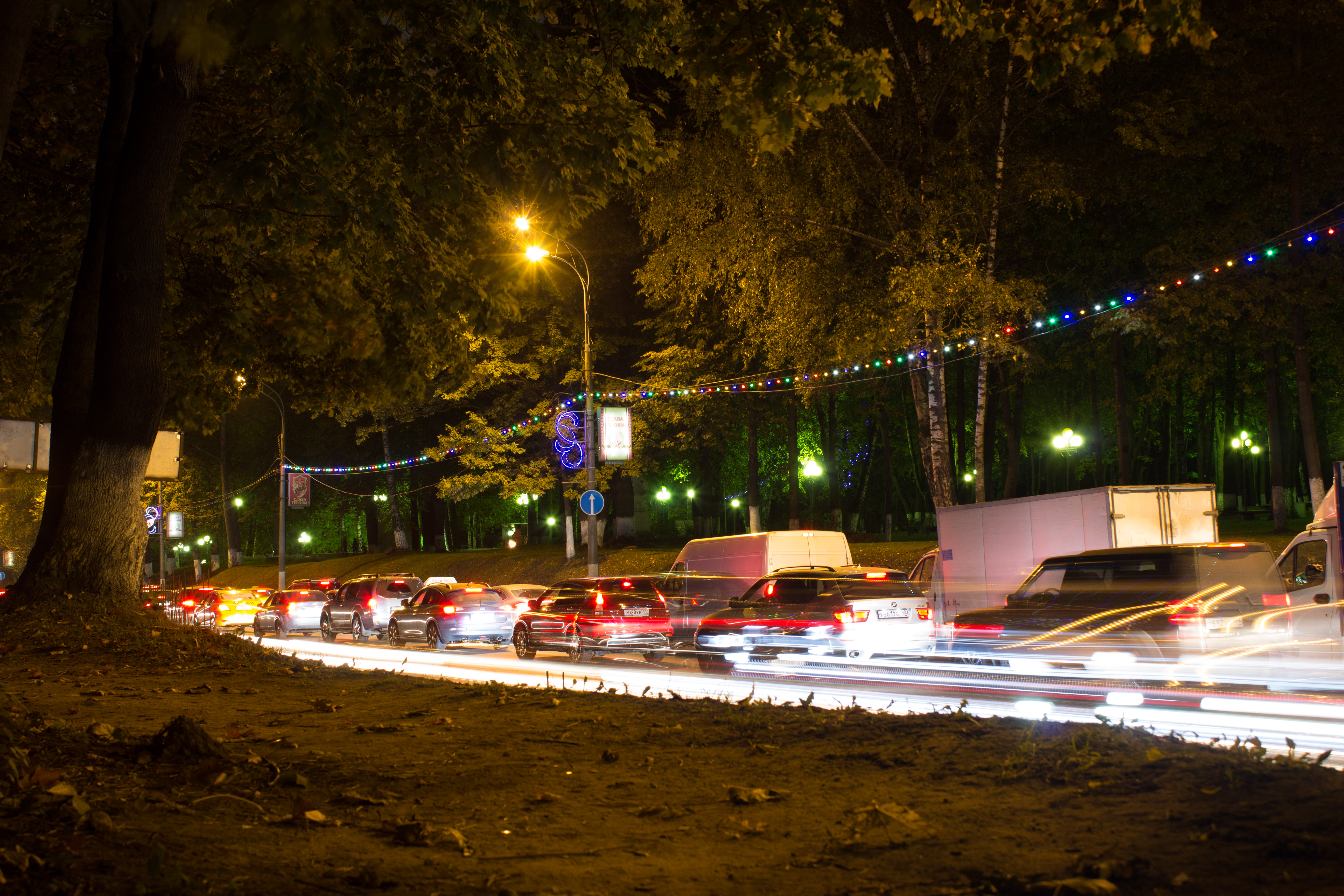 Хороший снимок. Есть несколько планов. Размытые треки от машин хорошо придают динамику снимку. При этом стоящие машины достаточно резкие, с хорошей детализацией. У кадра достаточно сложное освещение. за счет холодного света фар и желтого освещения от уличных фонарей. Параметры подобраны корректные, у снимка хорошее качество. Проработаны детали в тенях.