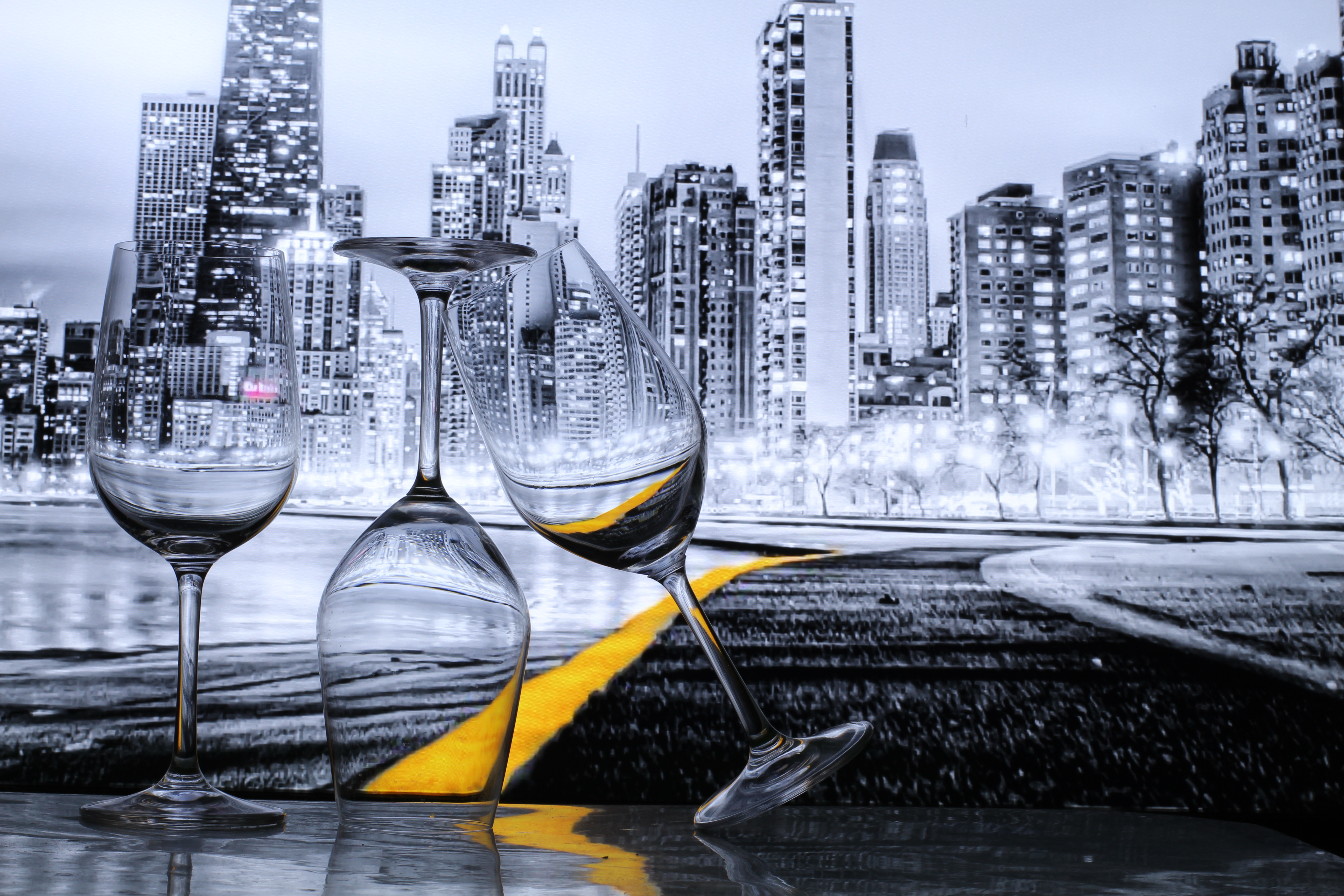 Красиво скомпонованы два фужера с желтым бликом. Они дополняют друг друга и желтый блик в них становится "изюменкой", ярким цветным акцентом.