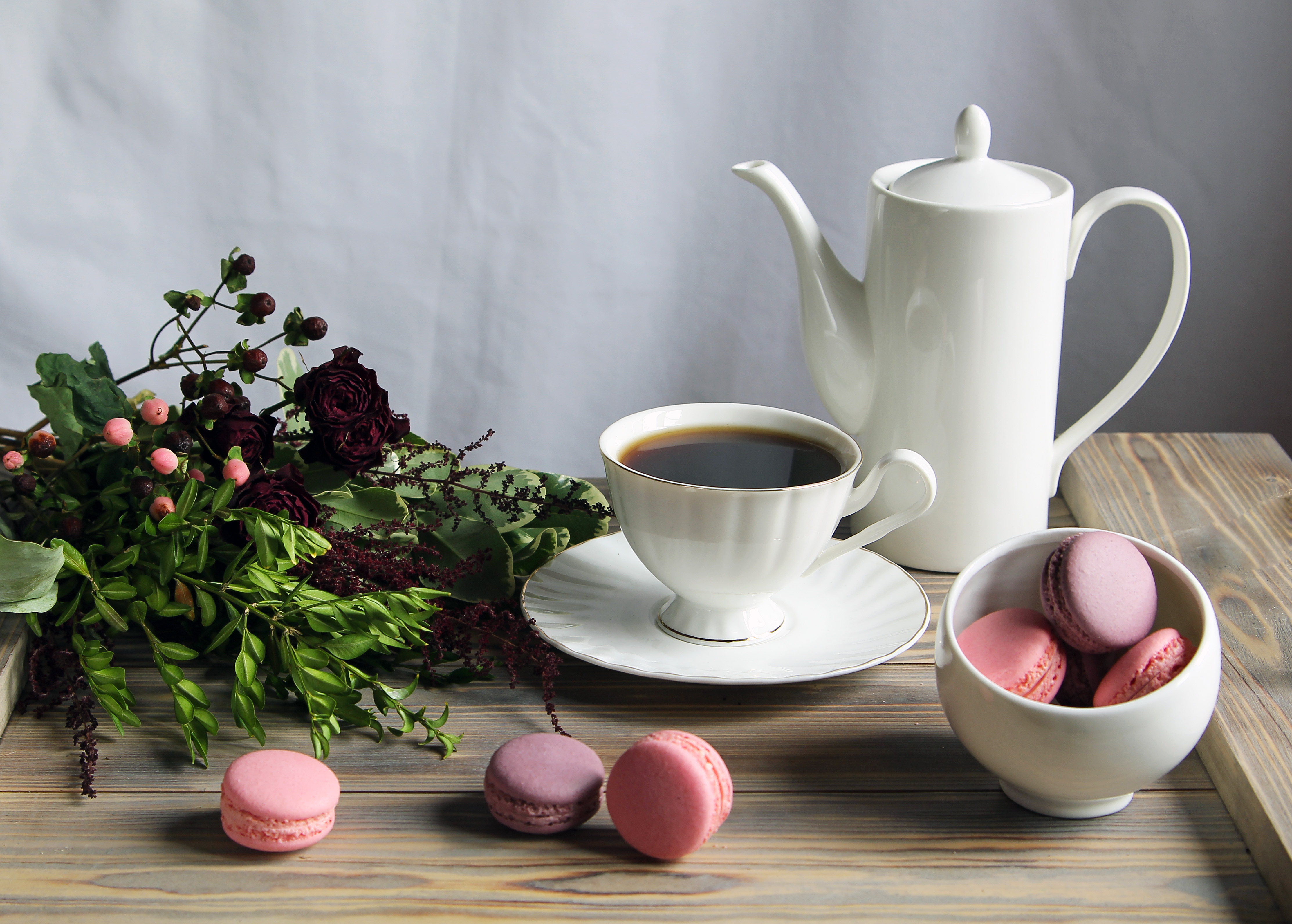 Диафрагма приоткрыта , глубина резкости стала меньше , резкость настроена на кружку. Она выделена , как главный объект.