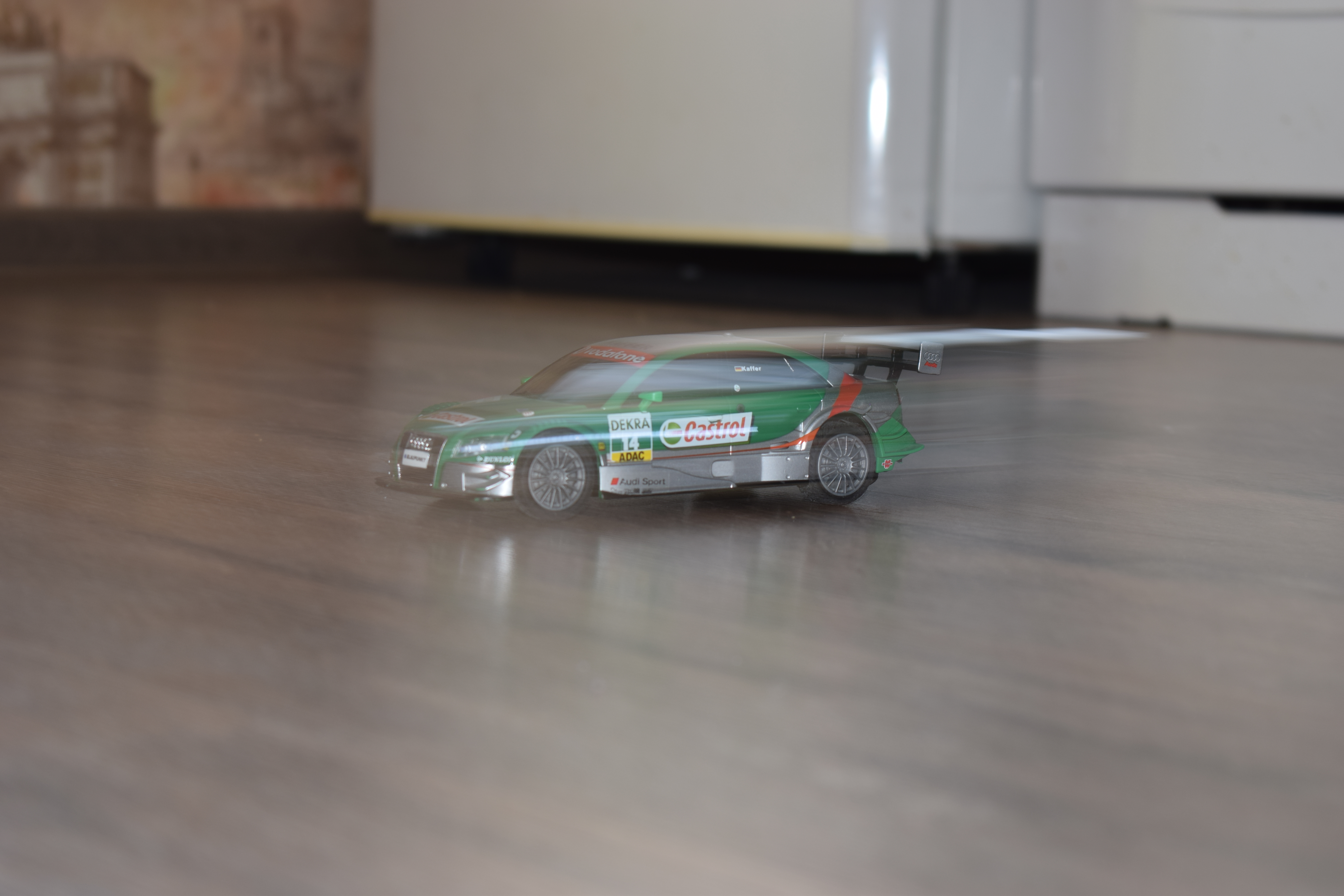 Можно было немного иначе откадрировать снимок, чтобы подчеркнуть еще сильнее движение в кадре - обрезать сильнее снимок справа и немного снизу, чтобы оставить перед машинкой больше свободного места, чем позади.