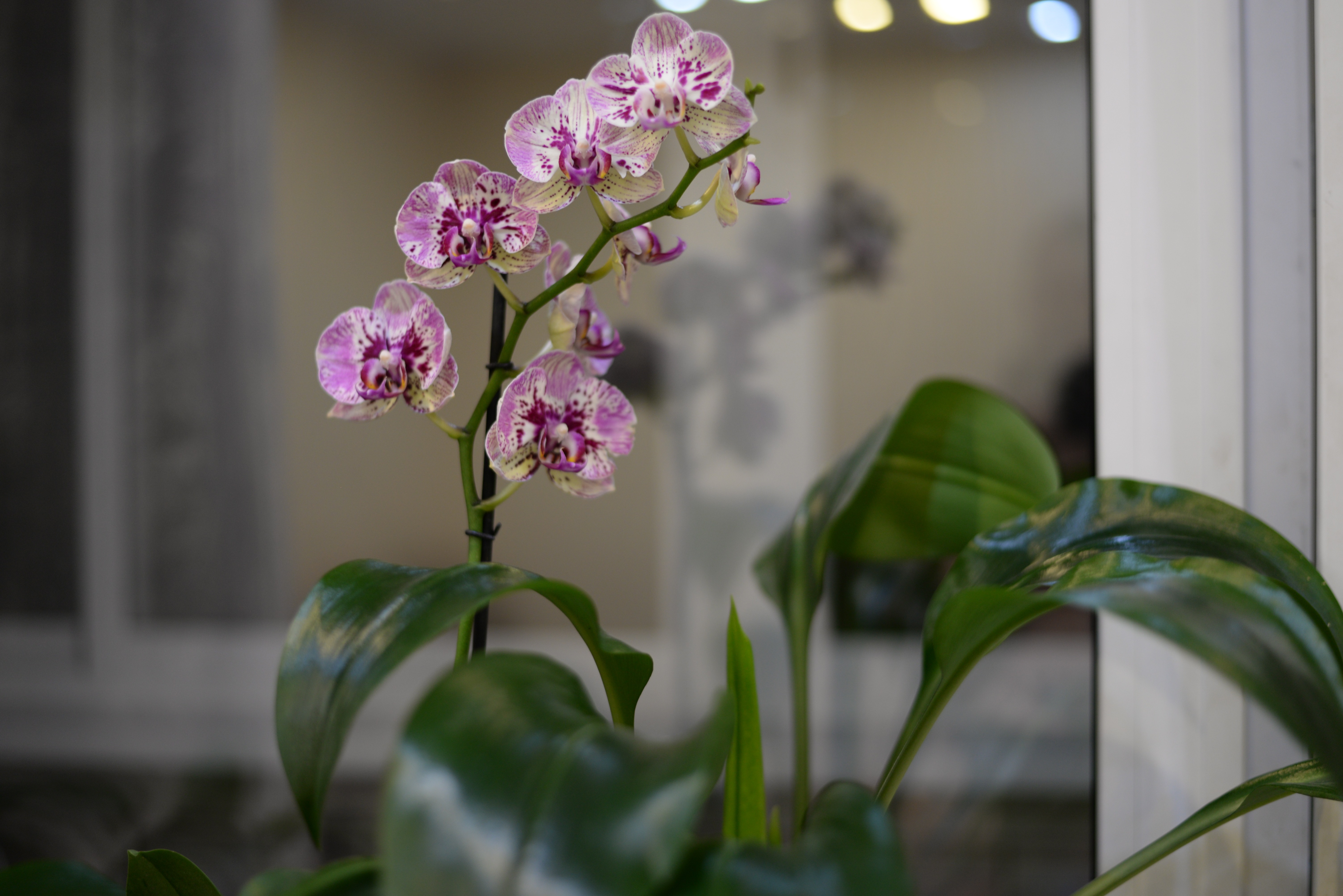 При совсем открытой диафрагме сложно поймать выбранную деталь в поле резкого изображения. Диафрагму лучше немного прикрыть , увеличить глубину резкости, включить в нее весь стебель с цветами.