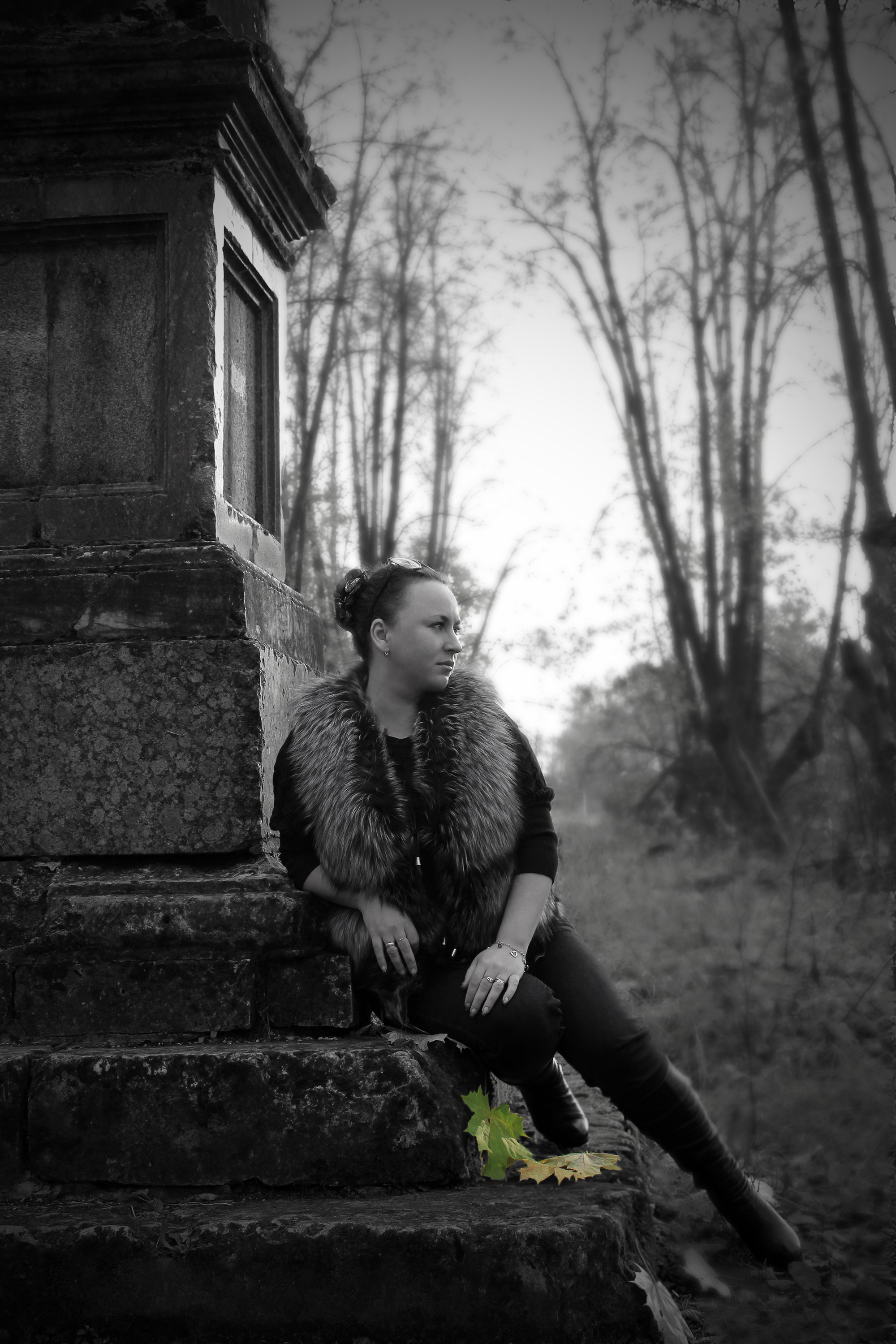 Фотография выразительно смотрится в чёрно-белом варианте. Оставили цвет на листьях - они отлично привлекают внимание в кадре.