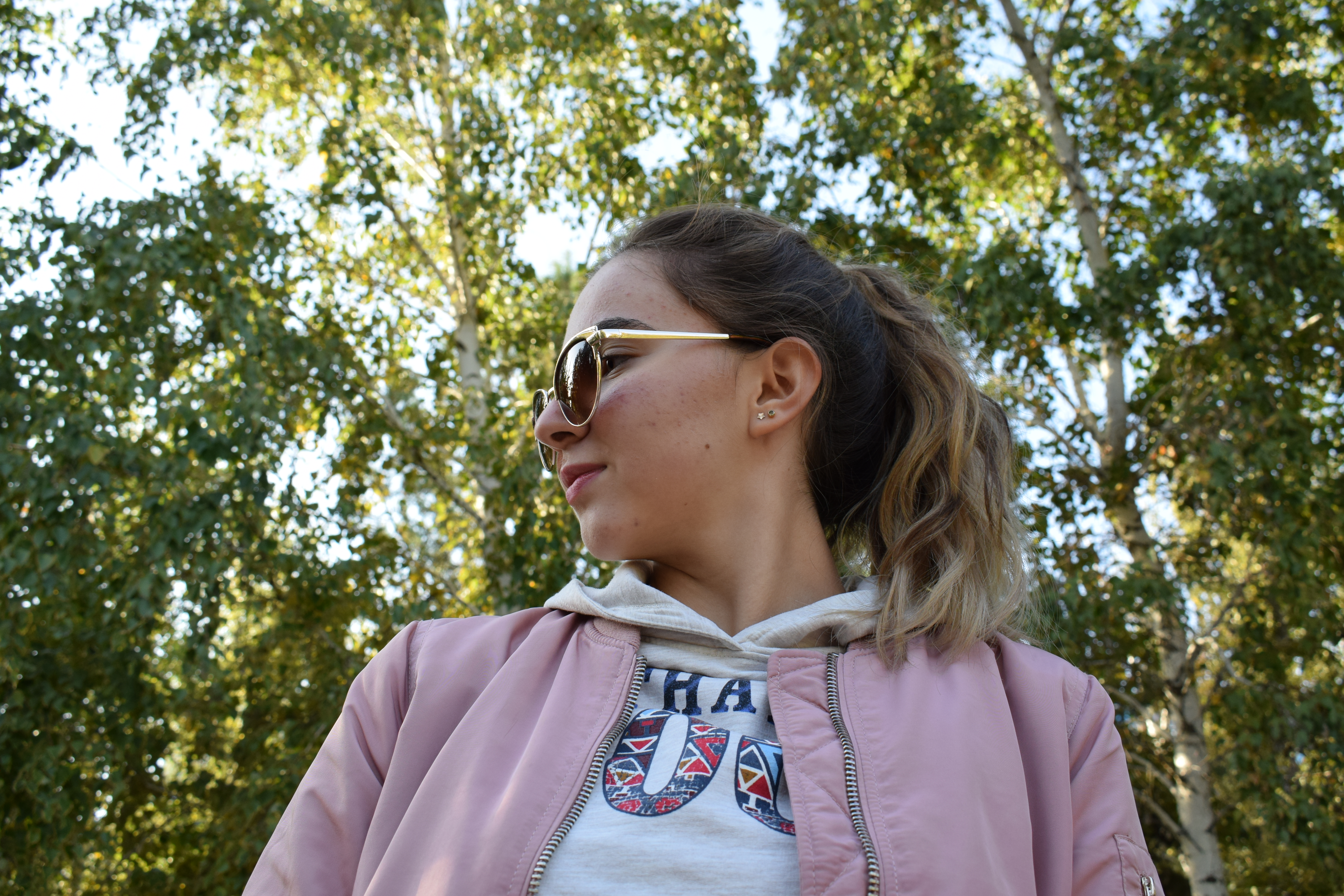 Интересную выбрали точку съемки . Снизу девушка выглядит выше , значительнее.