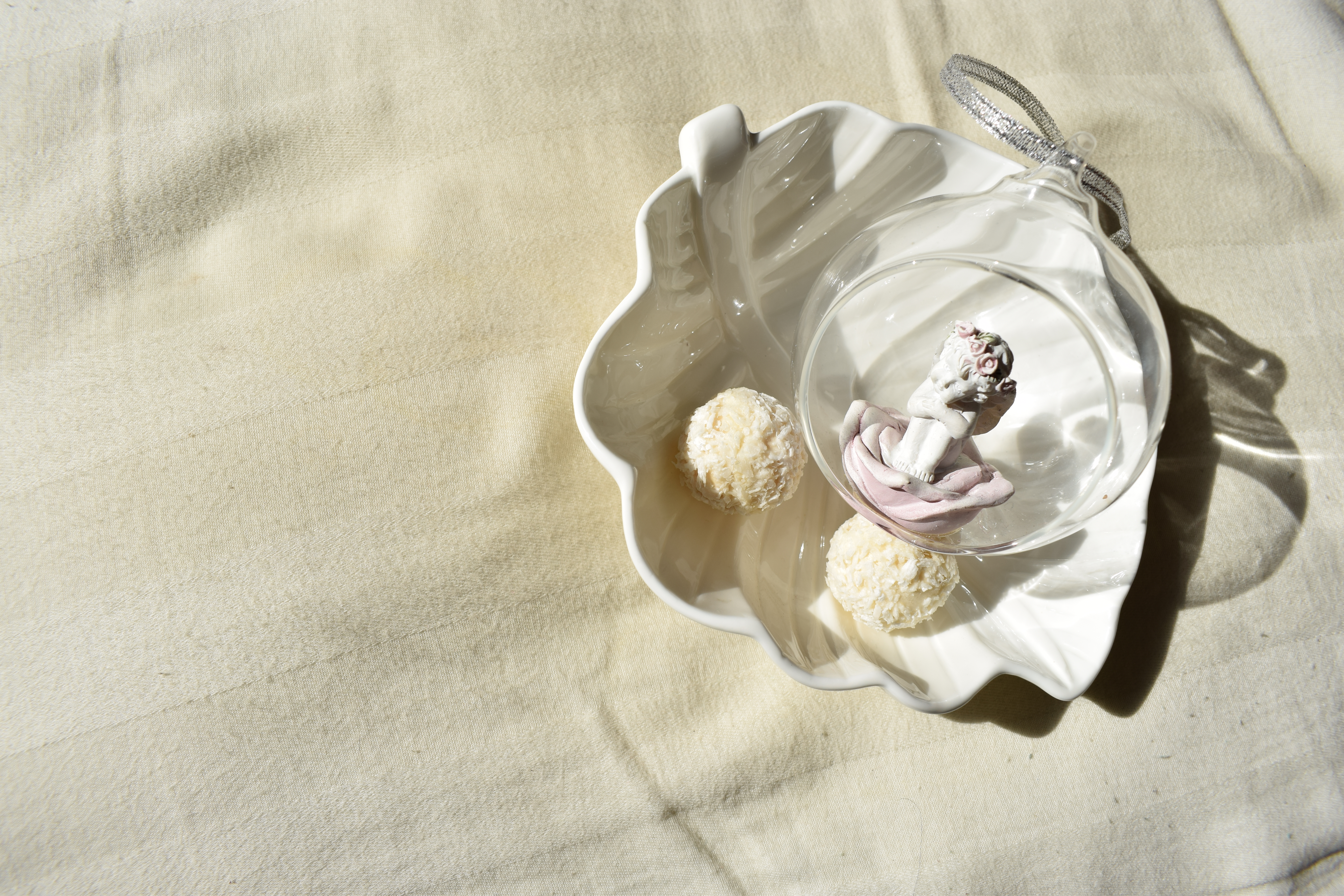 Освещение жестковатое , резкими тенями выделена тарелочка с фигуркой , почерпнута форма. Тень на фоне становится продолжением натюрморта.