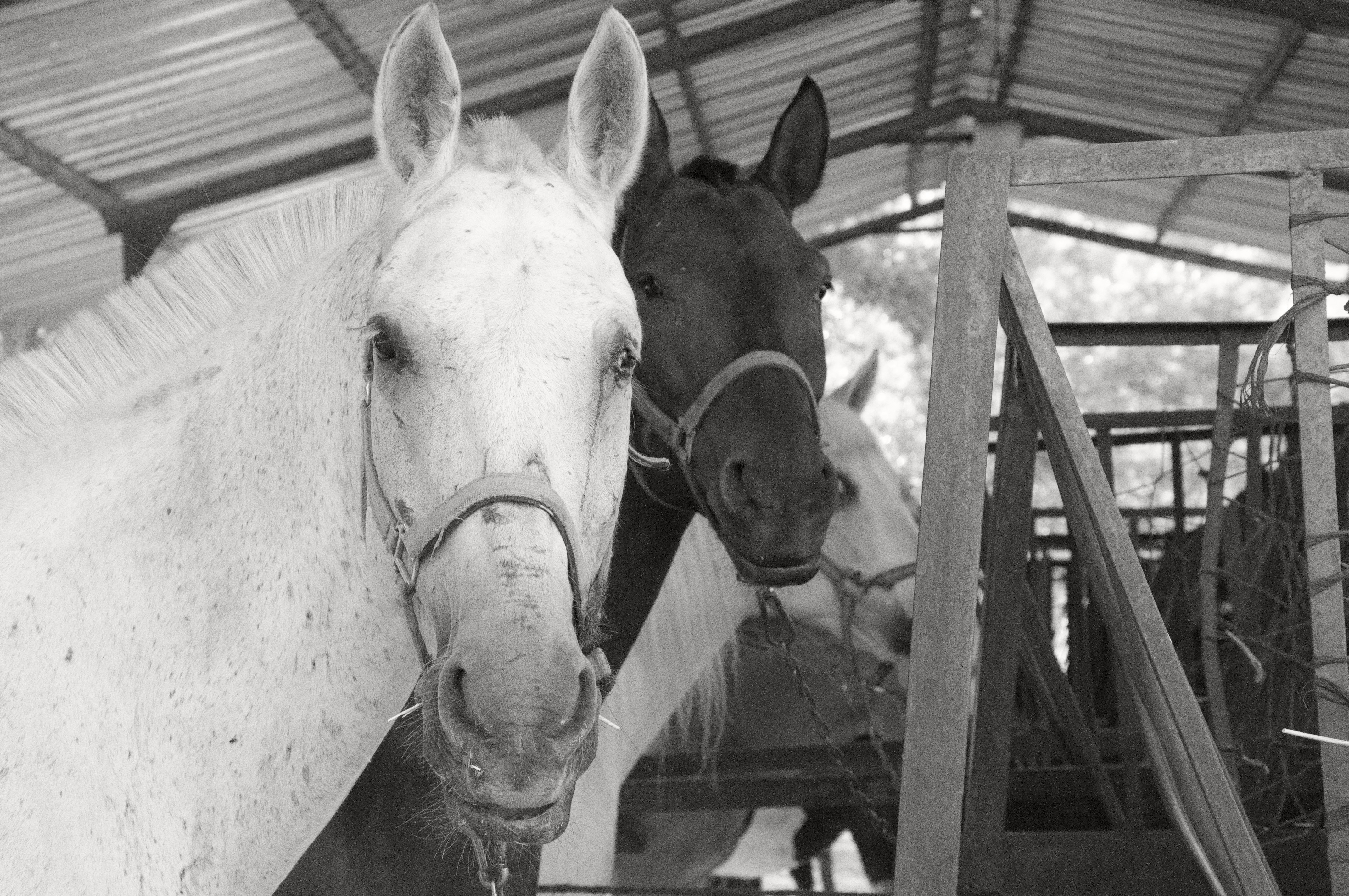 В чб здорово подчеркнут окрас черной и белой лошади, получился контрастный снимок.