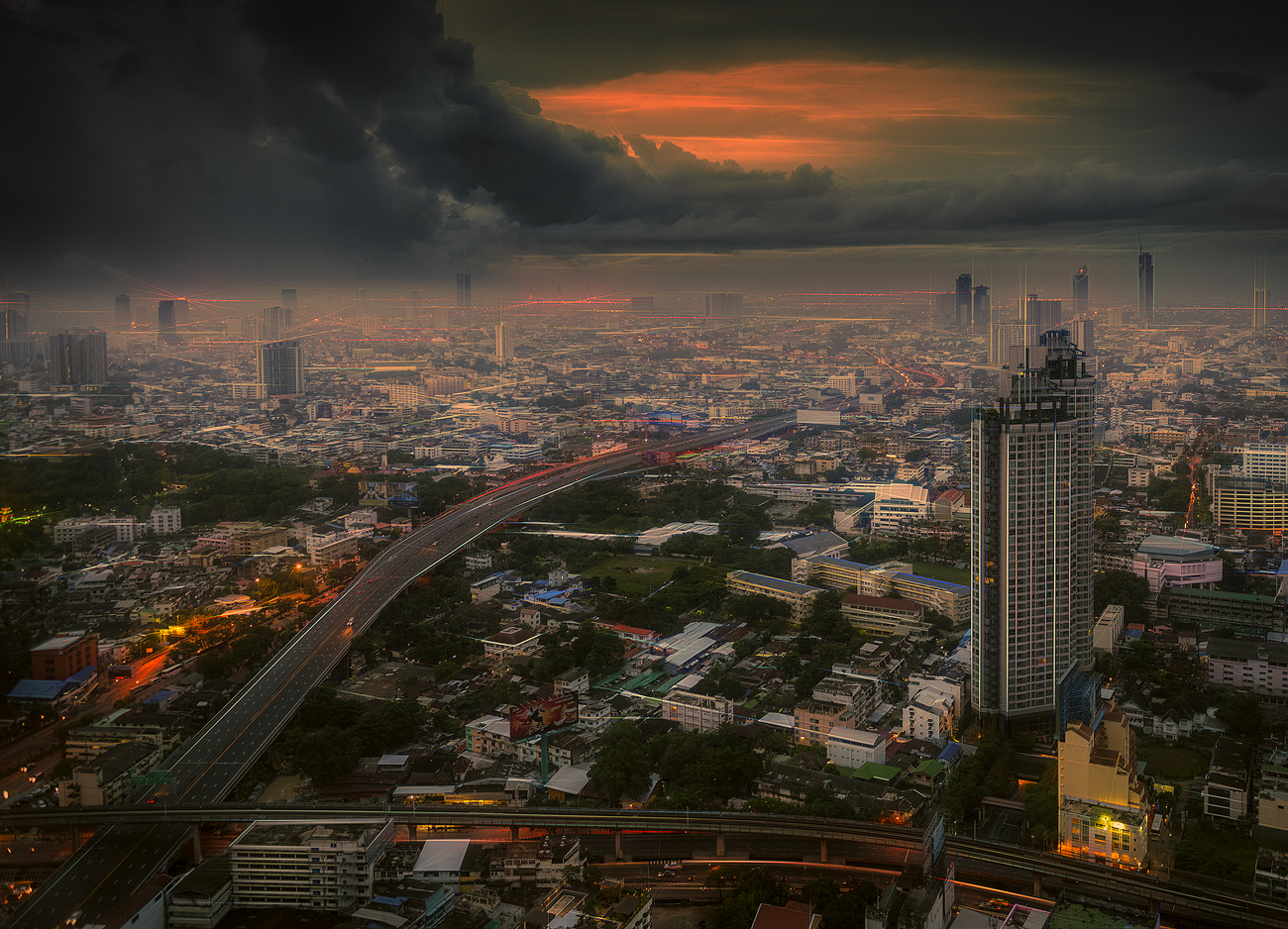 Симок стал более плотным, насыщенным. Небо рельефное и низкое , закрывает постепенно город.