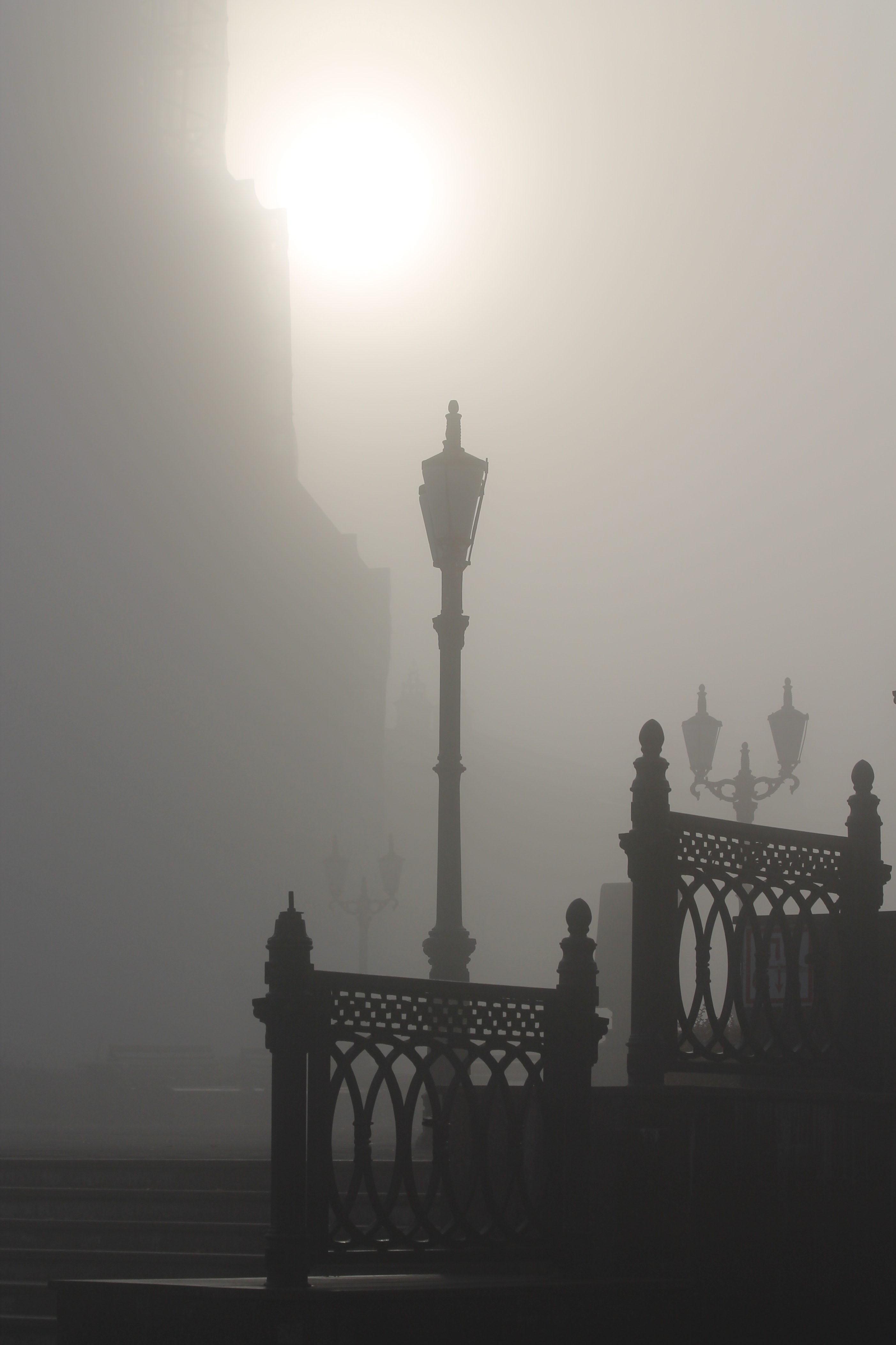 Захотелось немного похулиганить ))) Вот такой сюрреалистический сюжет получился туманным утром в субботу. Погода как по заказу выдает явления специально для заданий курса. Правило третей нарушено специально. Изначально вообще хотела сделать так, чтобы солнышко как бы "висело" на фонаре. Но потом решила немного поменять композицию.