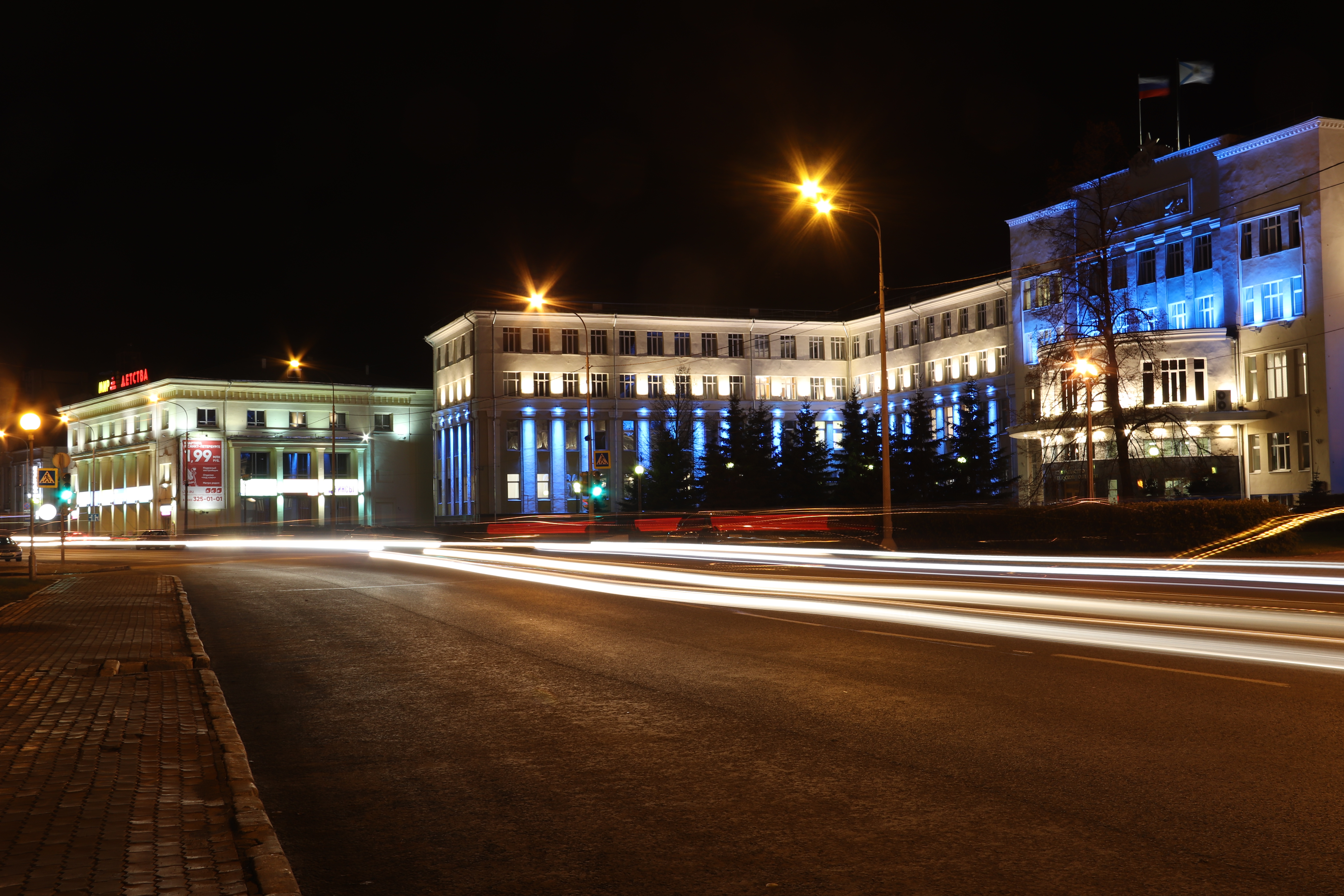 Хороший снимок! Корректно подобрали параметры и в этот раз снимок достаточно резкий, с хорошей детализацией. Закрытая диафрагма позволила получить лучики от фонарей. треки от проезжающих машин добавили динамики в кадр. Выбран хороший ракурс, усиливающий перспективу и глубину кадра за счет линий, уходящих в перспективу.