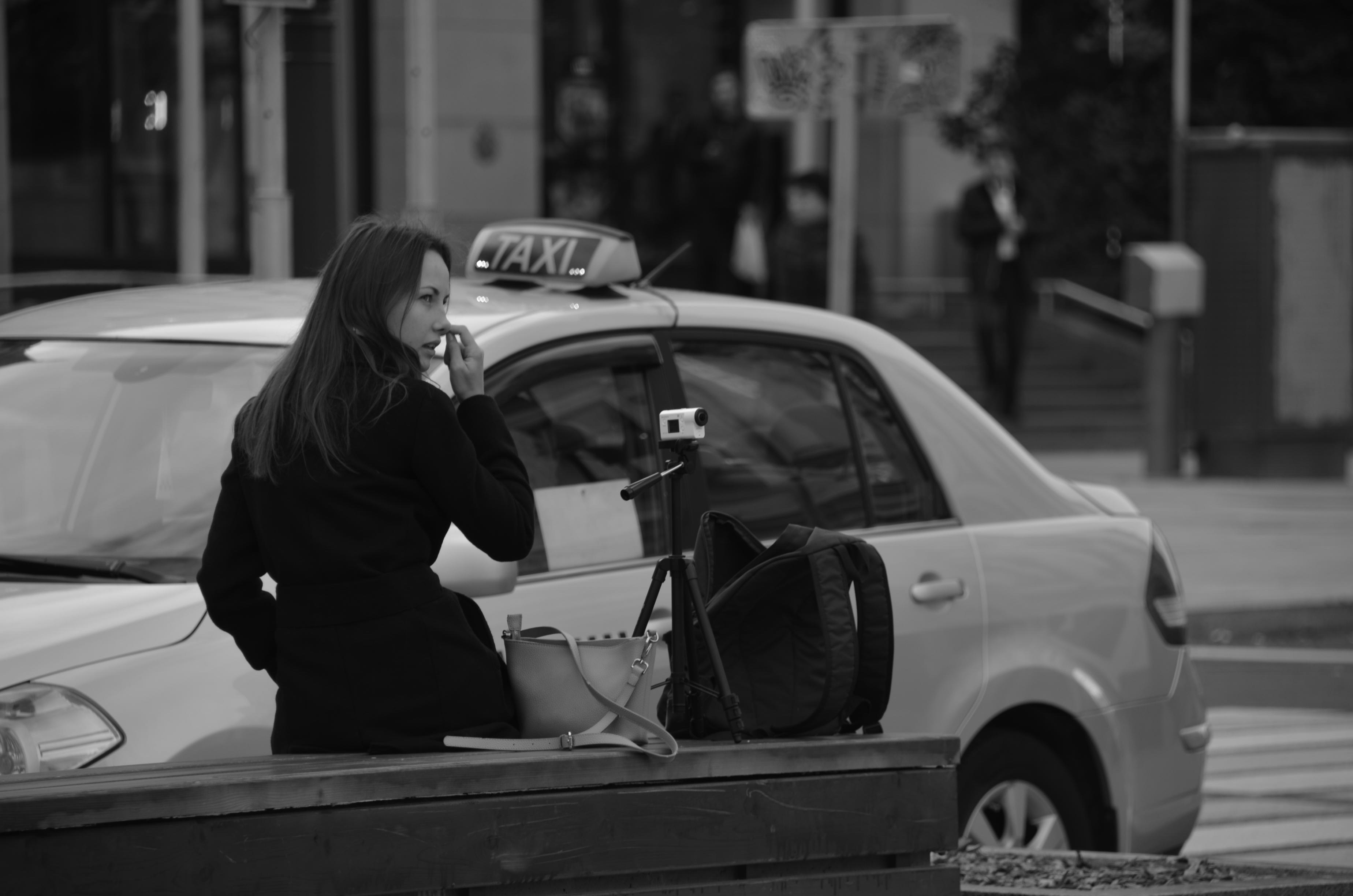 Неплохой снимок! Получился интересный репортажный кадр. Композиционно выстроили его достаточно неплохо, разместив девушку в левой части снимка, а перед взглядом оставили достаточно свободного места. Темный фигура девушки хорошо выделяется на фоне светлого автомобиля, при этом яркие пятна цвета не отвлекают зрителя. Такое цветовое решение позволило не отвлекаться на мелкие яркие детали