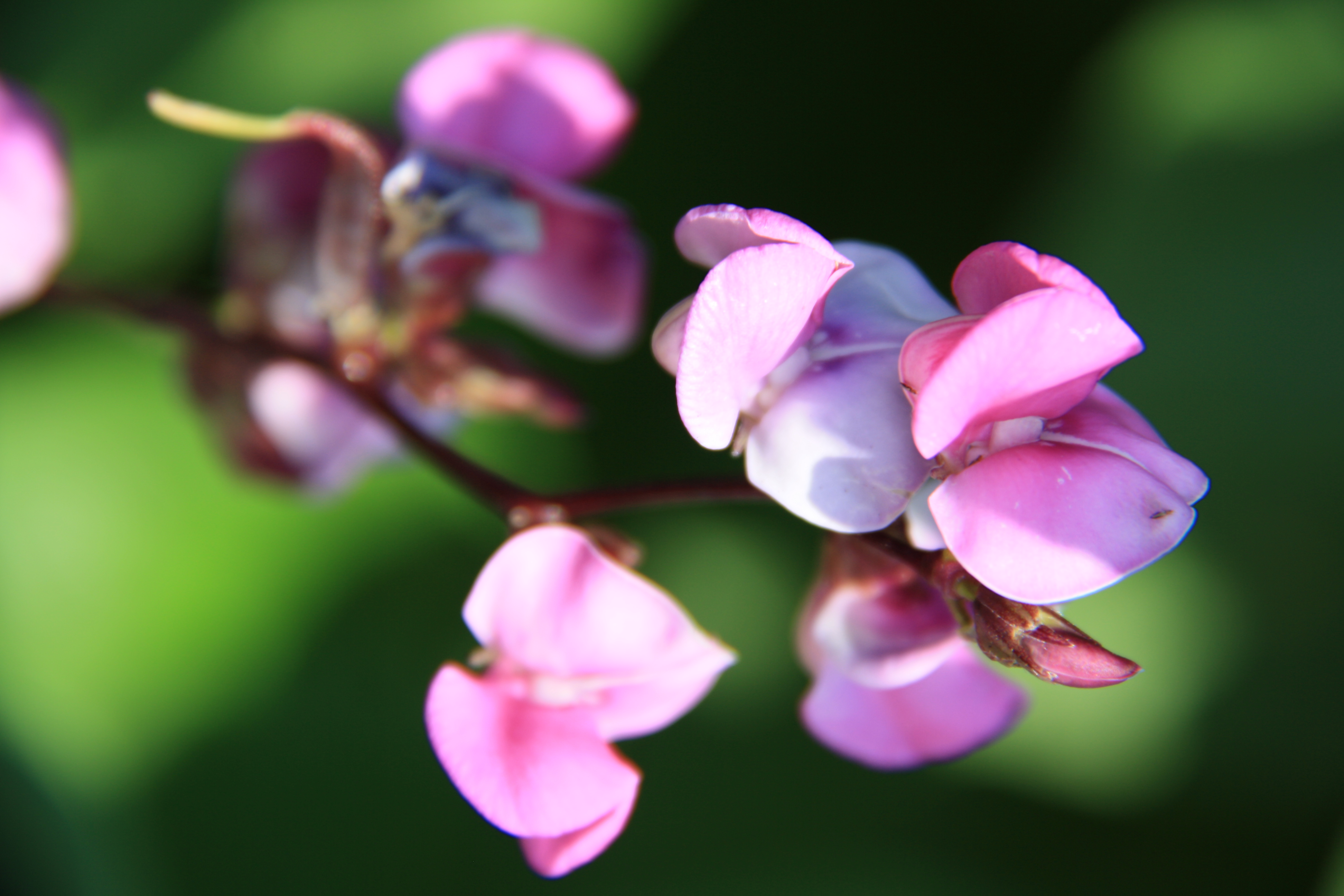 Добрый день! На оценку по свободной тематике представляю свою работу, выполненную в ходе изучения возможностей длиннофокусного объектива. При загрузке фото повернулось вправо, изначальная ориентация кадра - вертикальная. В кадре цветок декоративной фасоли. Задача при съемке была показать крупным планом достаточно декоративный, но в обычной жизни мало примечательный из-за своего небольшого размера цветок. Наилучший эффект, на мой взгляд, получился при максимально размытом фоне. Правда из-за небольшого значения ГРИП часть цветочков в соцветии также оказалась размыта. Буду рада получить рецензию профессионала