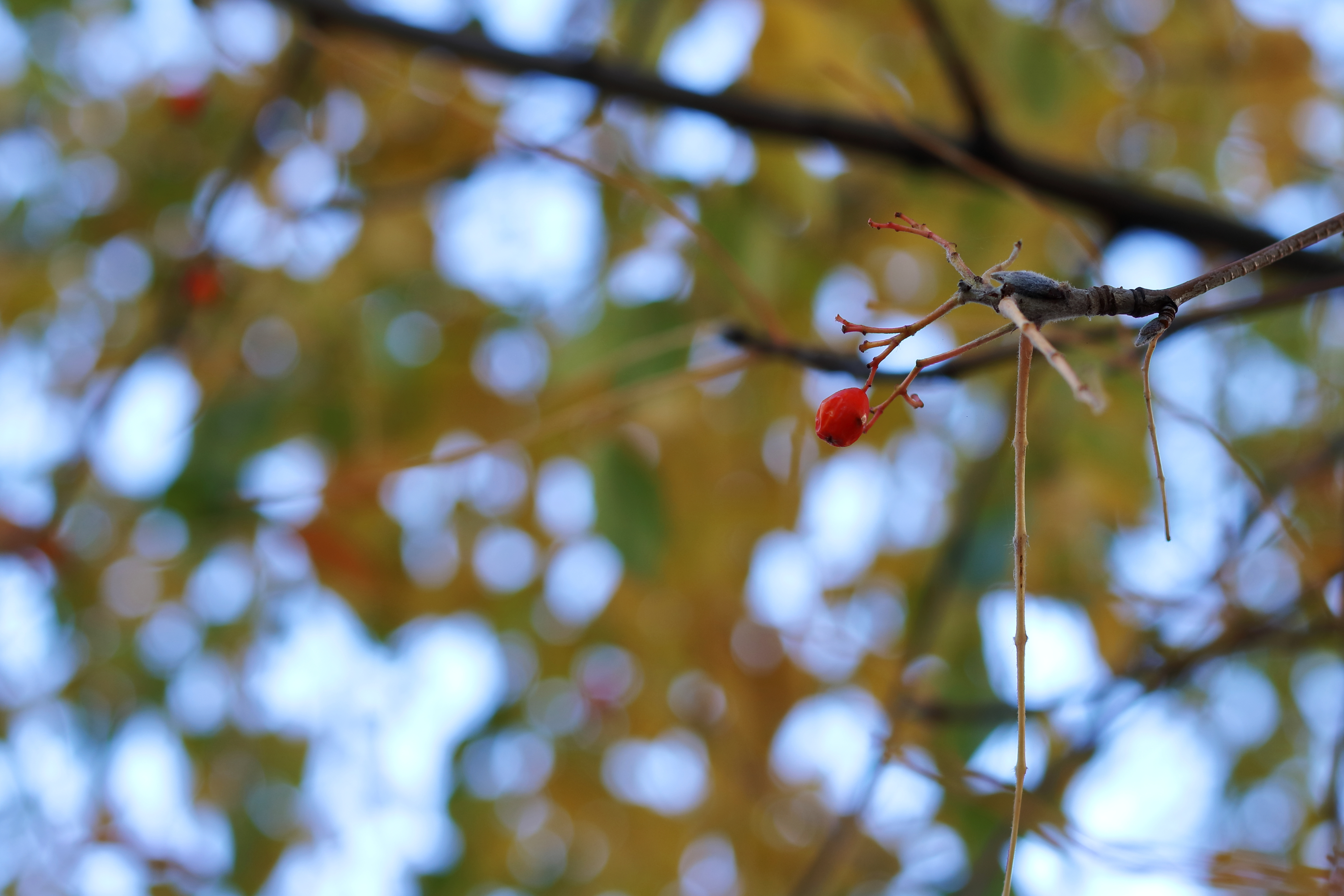 Яркая красная ягода отлично выделяется на размытом фоне.