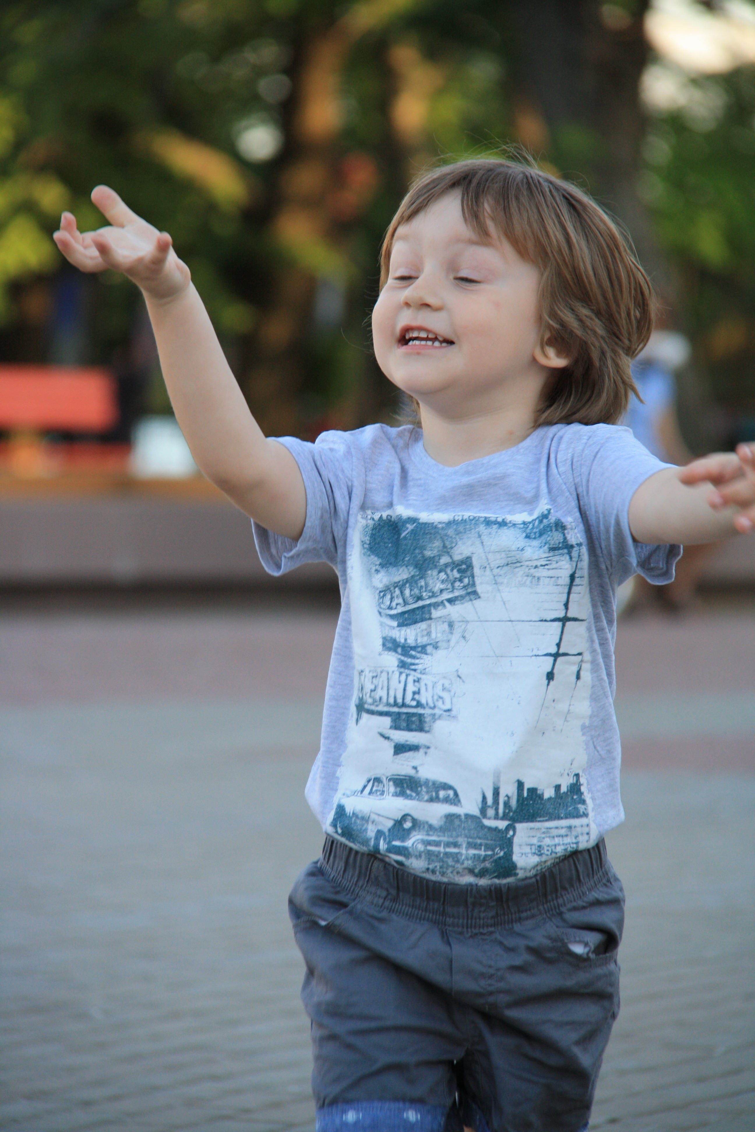 Добрый день! Нередко я запечатлеваю жизнь своих детей, по факту в форме репортажа. Чаще использую при этом длиннофокусный объектив с тем, чтобы факт съемки не был сильно заметен детьми в ходе какой-либо деятельности, либо вообще остался ими незамеченным. При съемке на улице объект, как правило, находится в движении, либо совсем ненадолго занимает статичное положение, поэтому чаще всего ранее я снимала данные сюжеты на режиме "P". На представленной работе запечатлен мой сын на прогулке летним днем в момент, когда он шел по парку, напевая песенку. Он не видел факта съемки. Положительной стороной работы считаю достаточно сфокусированное изображение ребенка при размытом заднем фоне, а также запечатленная эмоция. Недостатками, я думаю, является то, что мало охвачена окружающая обстановка и вне кадра оказалась часть руки ребенка.