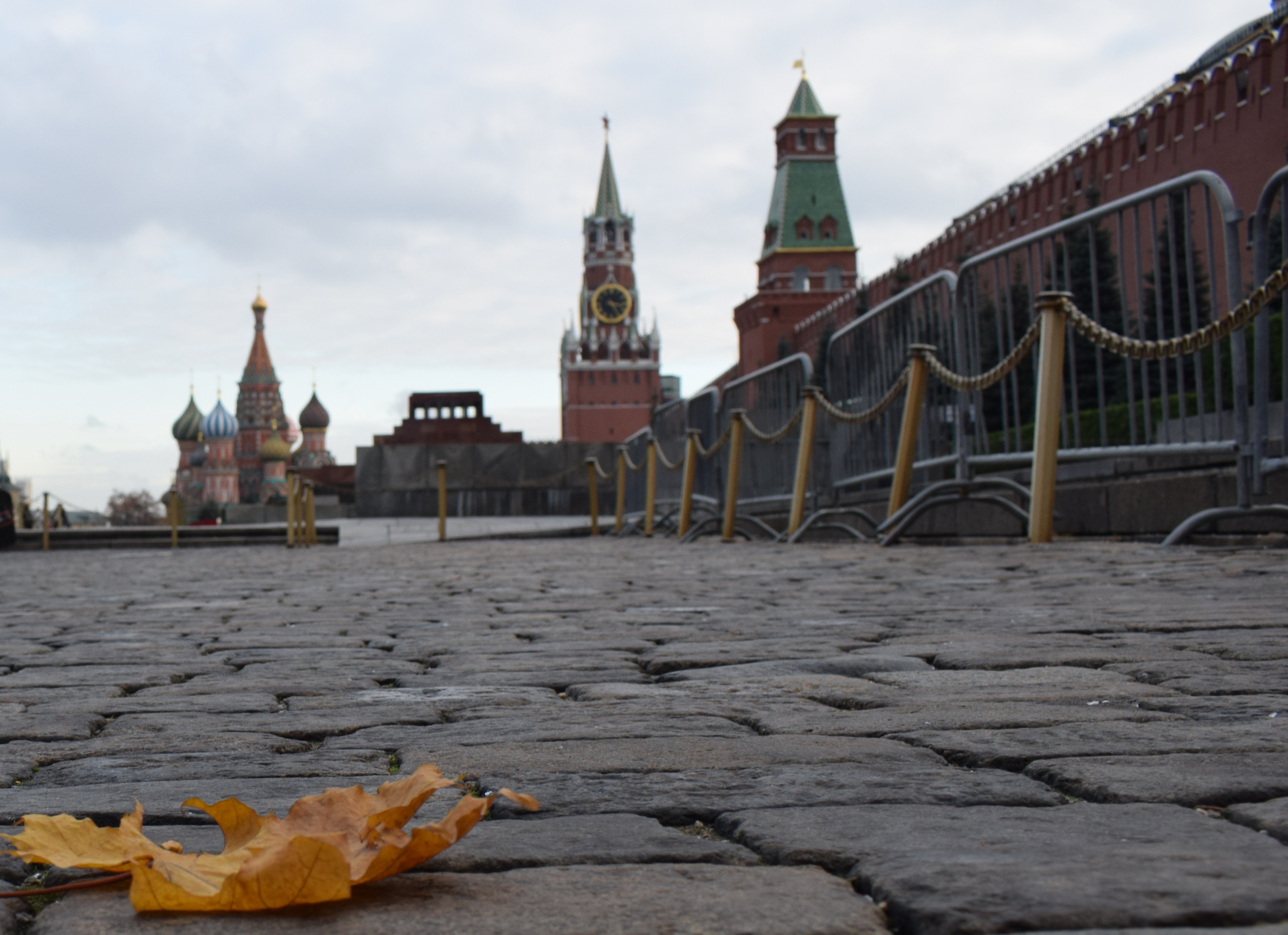 На огромной Красной площади увидела одинокий лист. Удивительно. Как не сфотографировать. Съемка автоматическая.