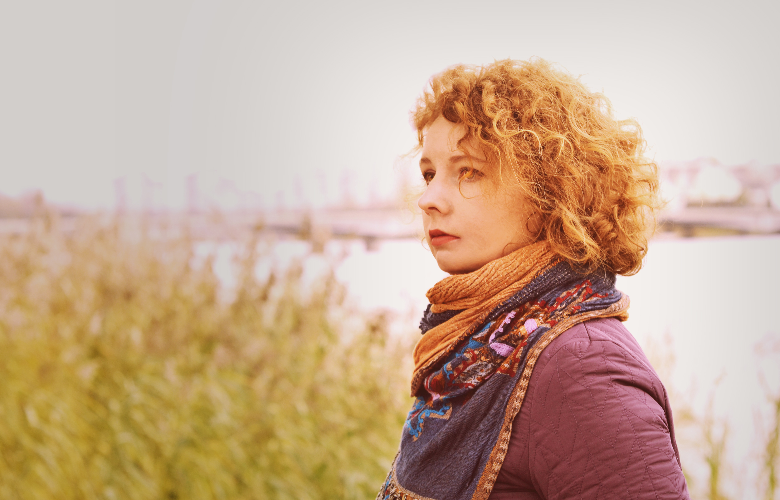 Здорово подчеркнуты волосы модели . Пересвеченное пустое небо стало менее активным, оно уже не отвлекает от портрета .