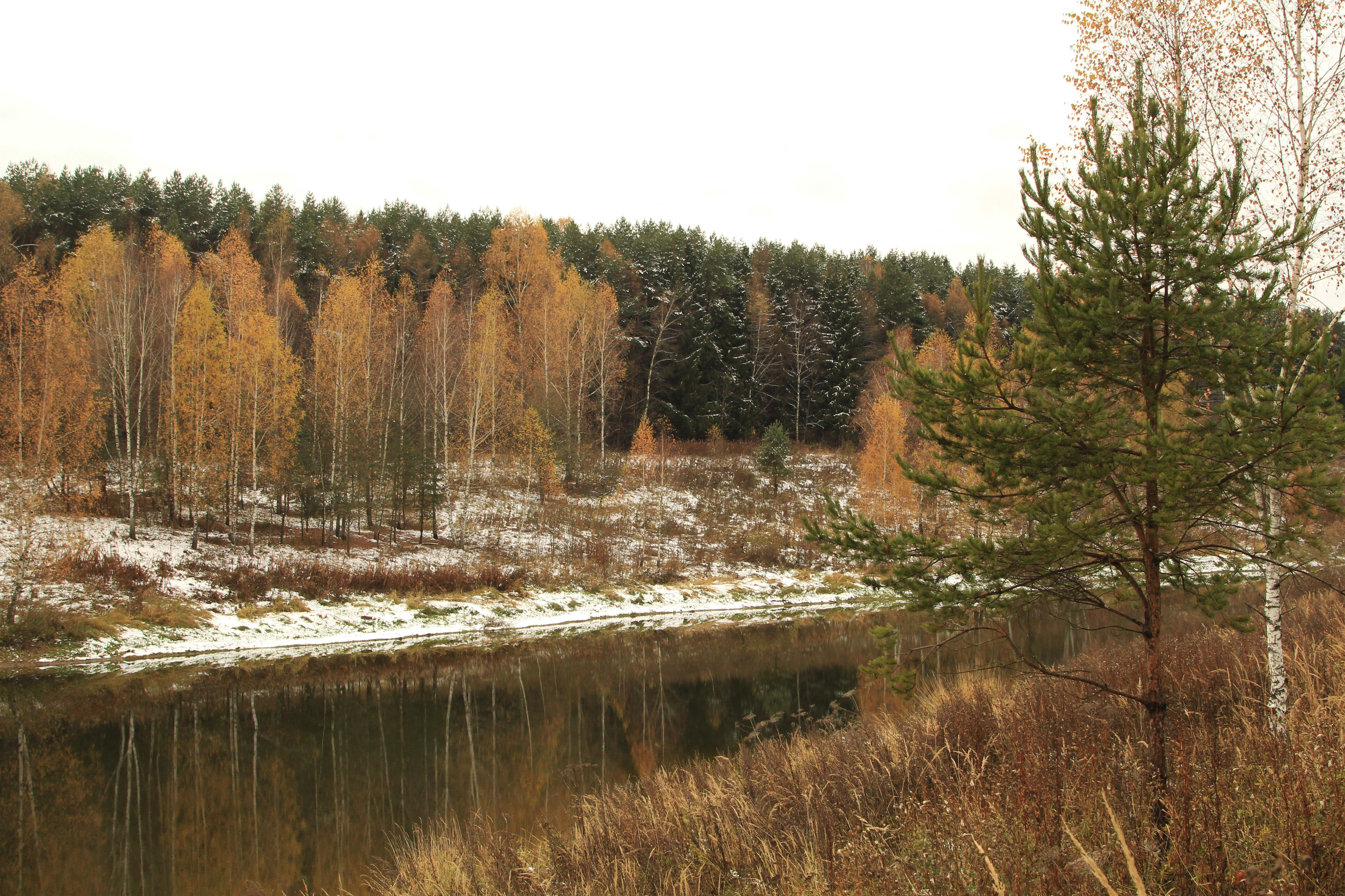 Спасибо большое за рецензию! Попробую исправить ошибки. На этой фотографии стоит одинокая сосна на берегу реки, уже выпал первый снег.