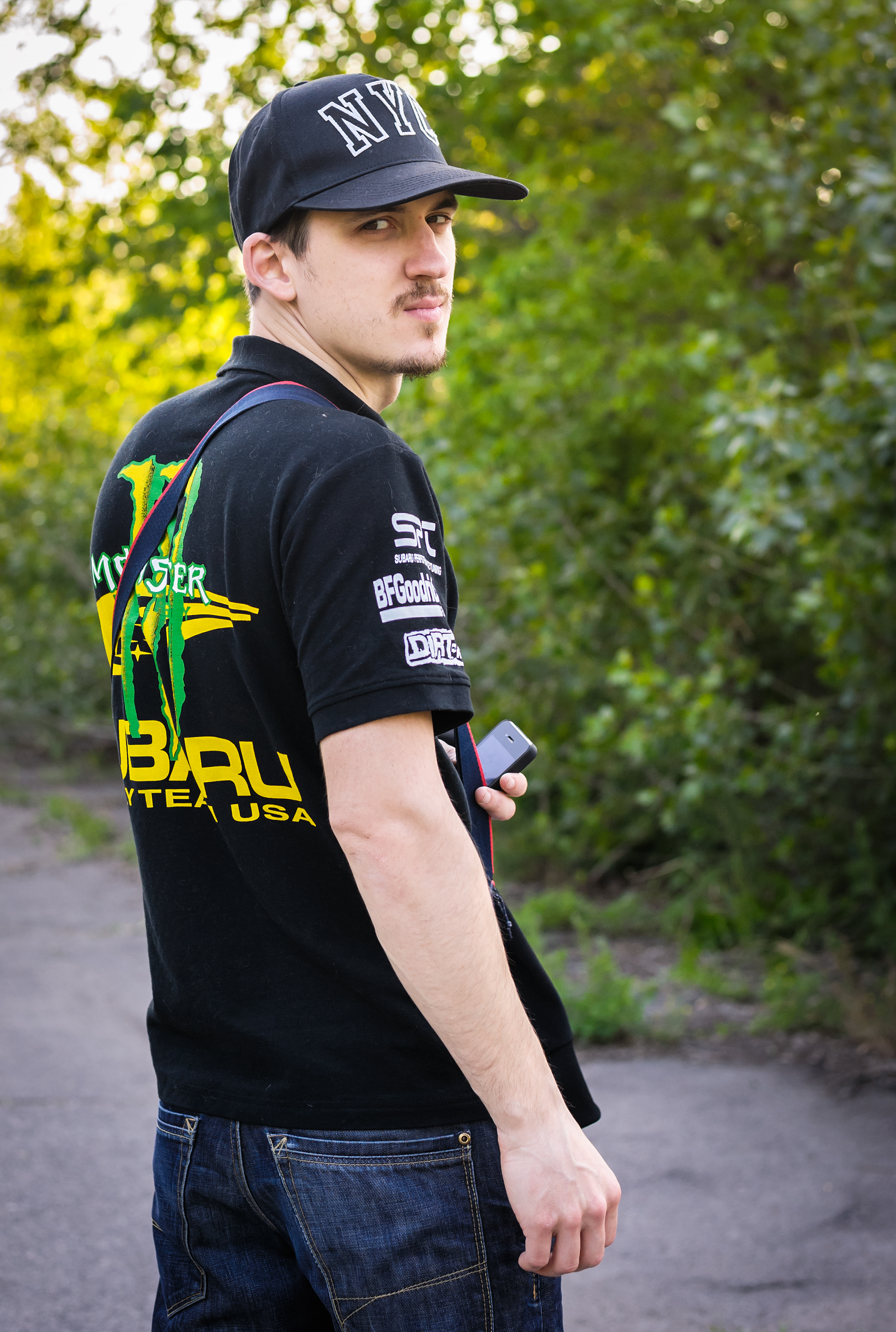 Глаза прикрыты козырьком кепки, они в тени , но это не портит снимок , так как тень не резкая , рассеянная.