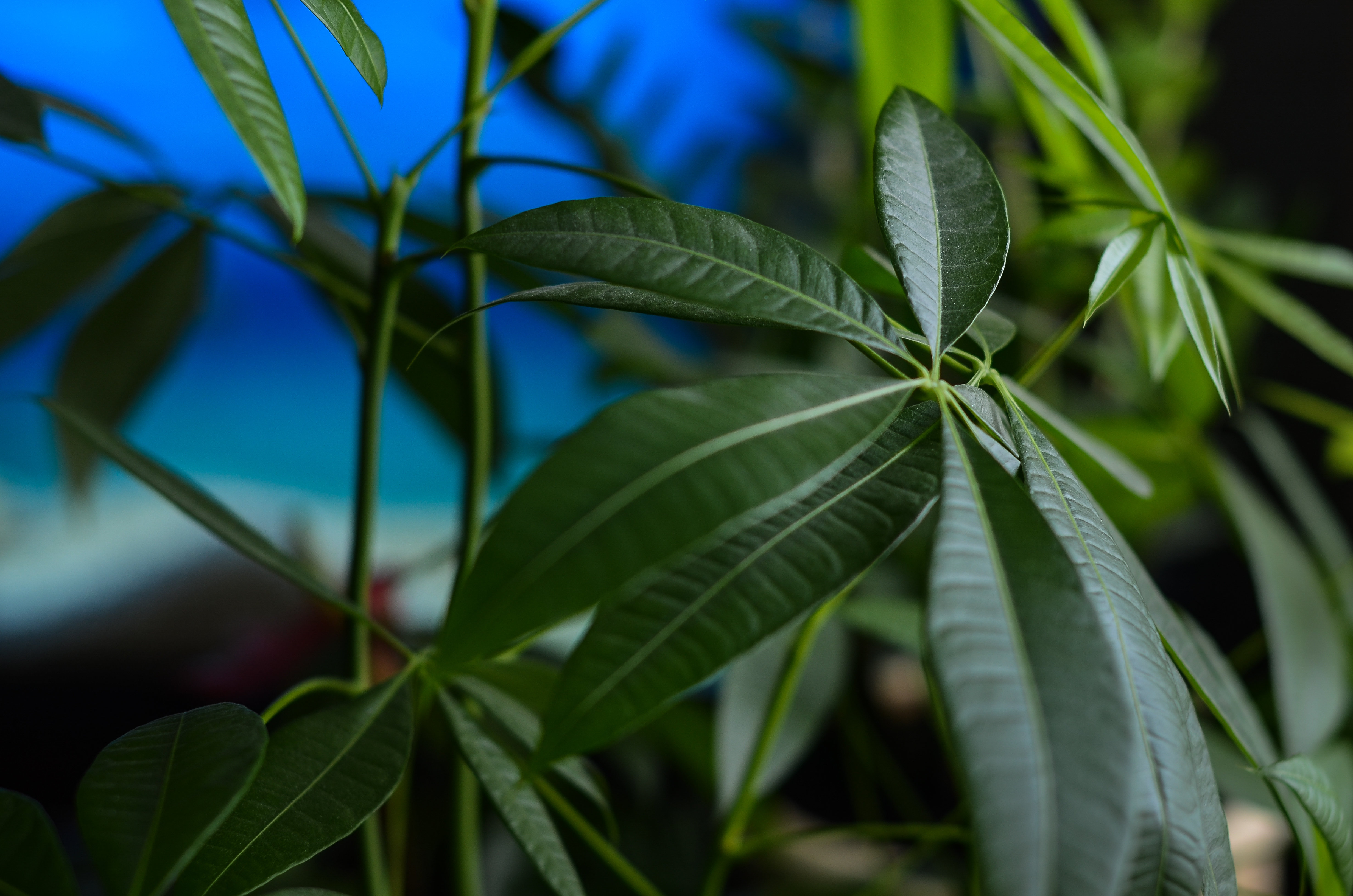 Диафрагма приоткрыта и использовано длинное фокусное расстояние объектива, поэтому глубина резкости получилась маленькая, размытый фон усиливает внимание на выбранном листочке.