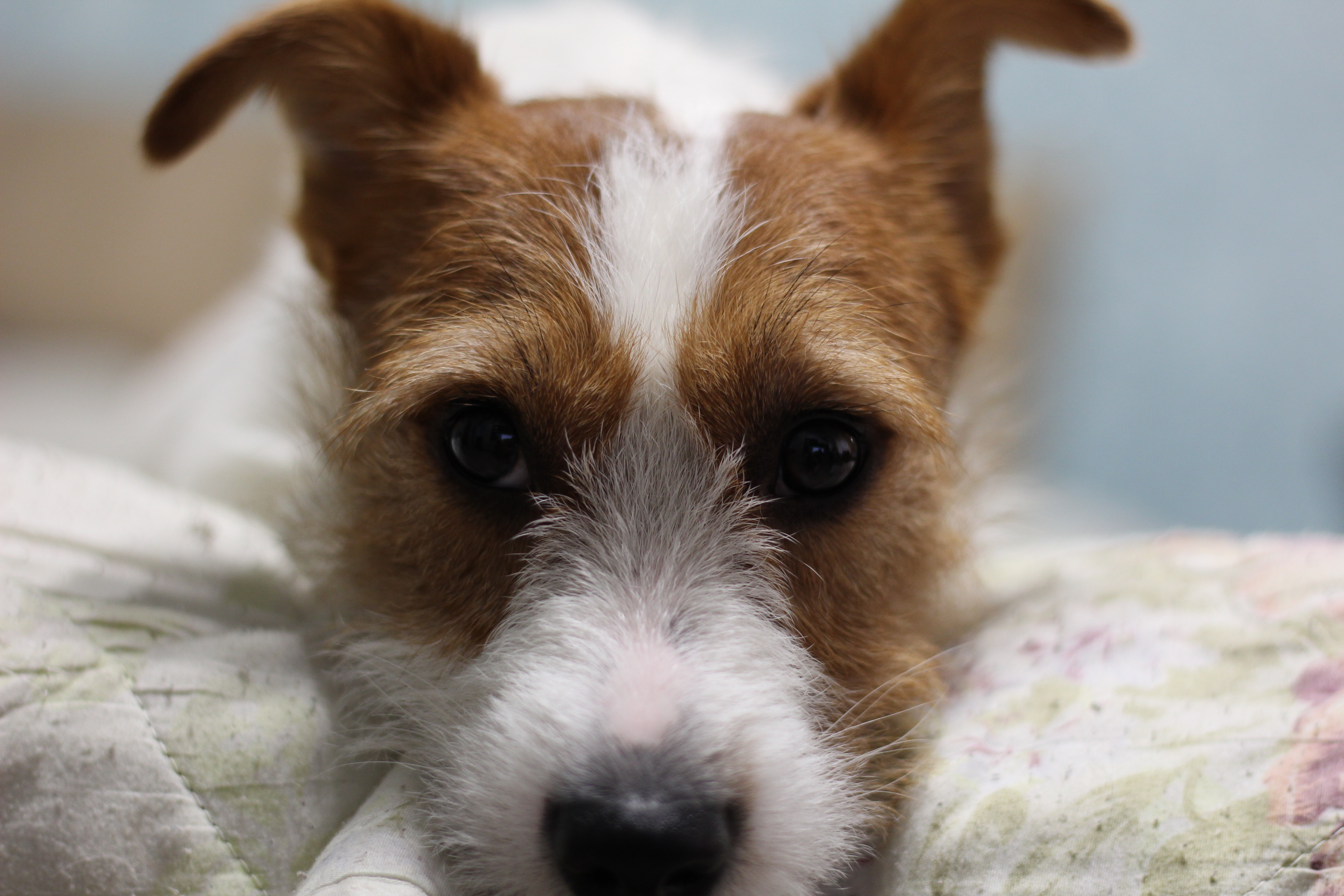 По композиции не очень удачно обрезан нос у собаки. Стоило использовать чуть более свободное кадрирование, так же можно было использовать вертикальную ориентацию снимка.