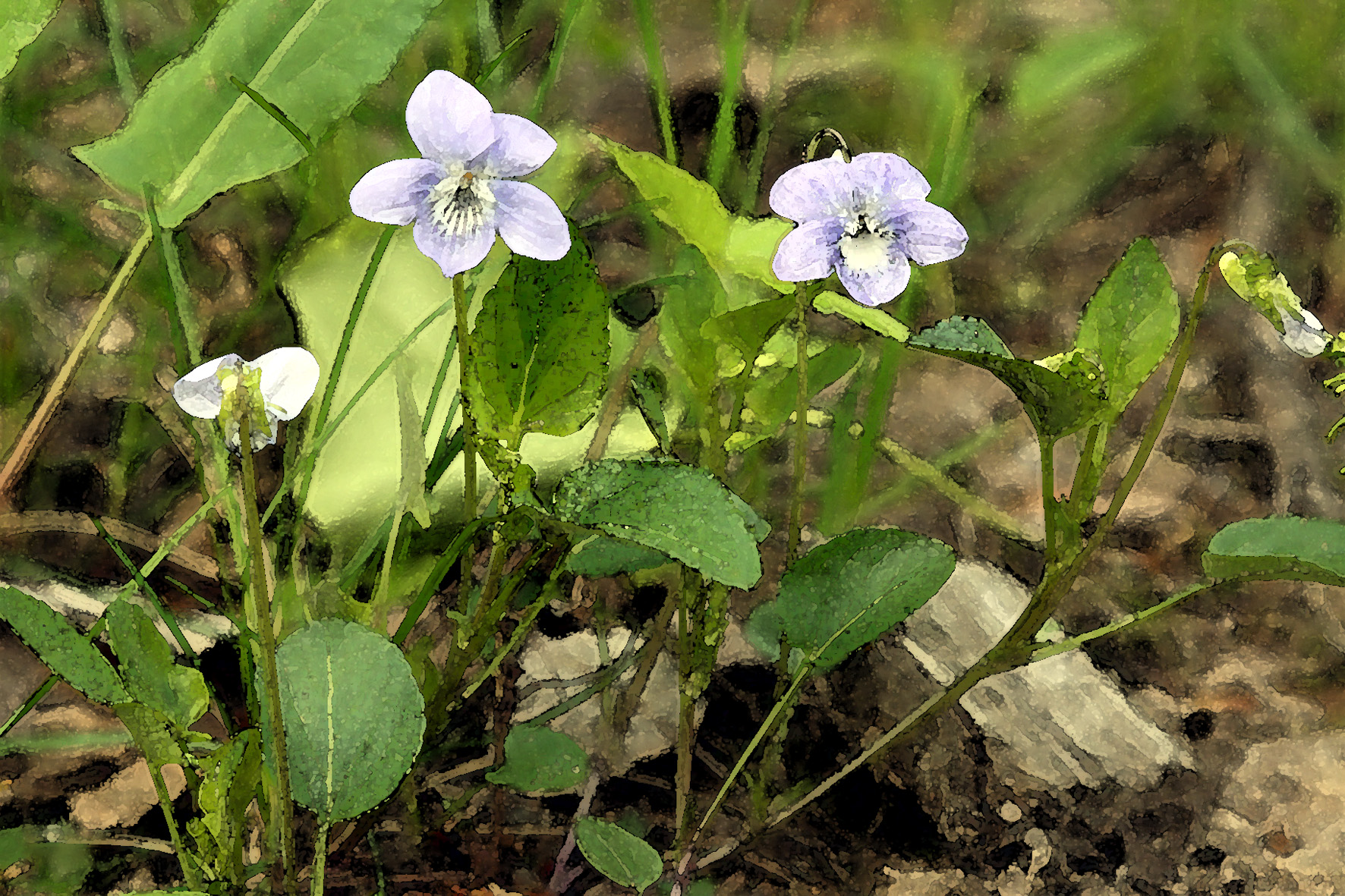 Добрый день. Эти фиалочки, не очень выразительные, обработала через фильтр "Акварель". Здесь также обрезка и автоматическая коррекция света и контрастности. Возможно, картинка получилась немного поинтереснее.