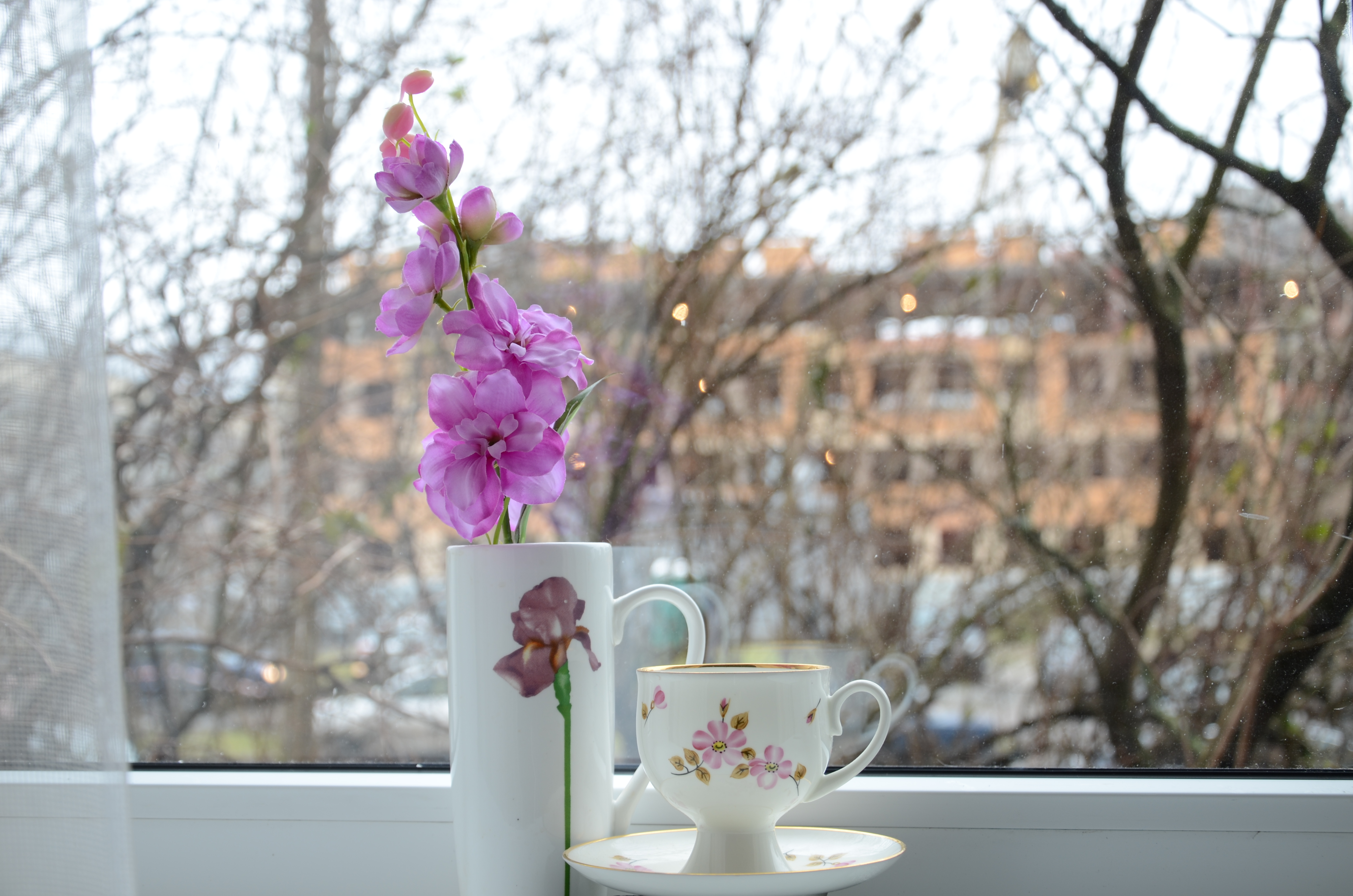 По композиции можно было показать чуть больше низ снимка, чтобы не обрезать чашку и вазочку и показать место их опоры на подоконнике.