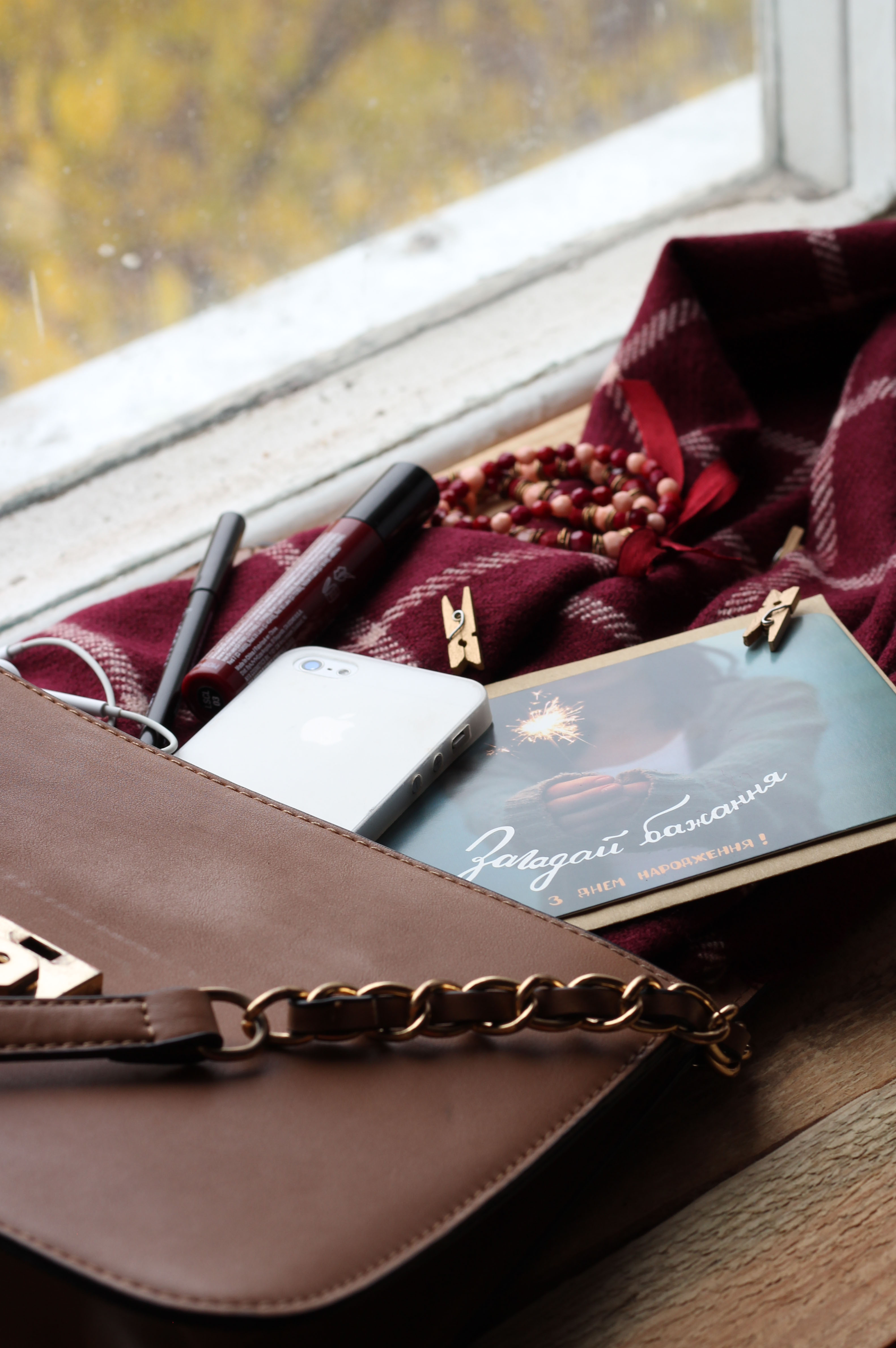 Хороши снимок! Достаточно интересно кадрировали снимок, но при этом важные элементы не обрезаны. В одном кадре смогли показать и саму сумочки, и ее содержимое, создав яркий и красивый натюрморт на окне. При этом дневной свет достаточно равномерно осветил всю сцену. Неплохо справились с достаточно длинной выдержкой.