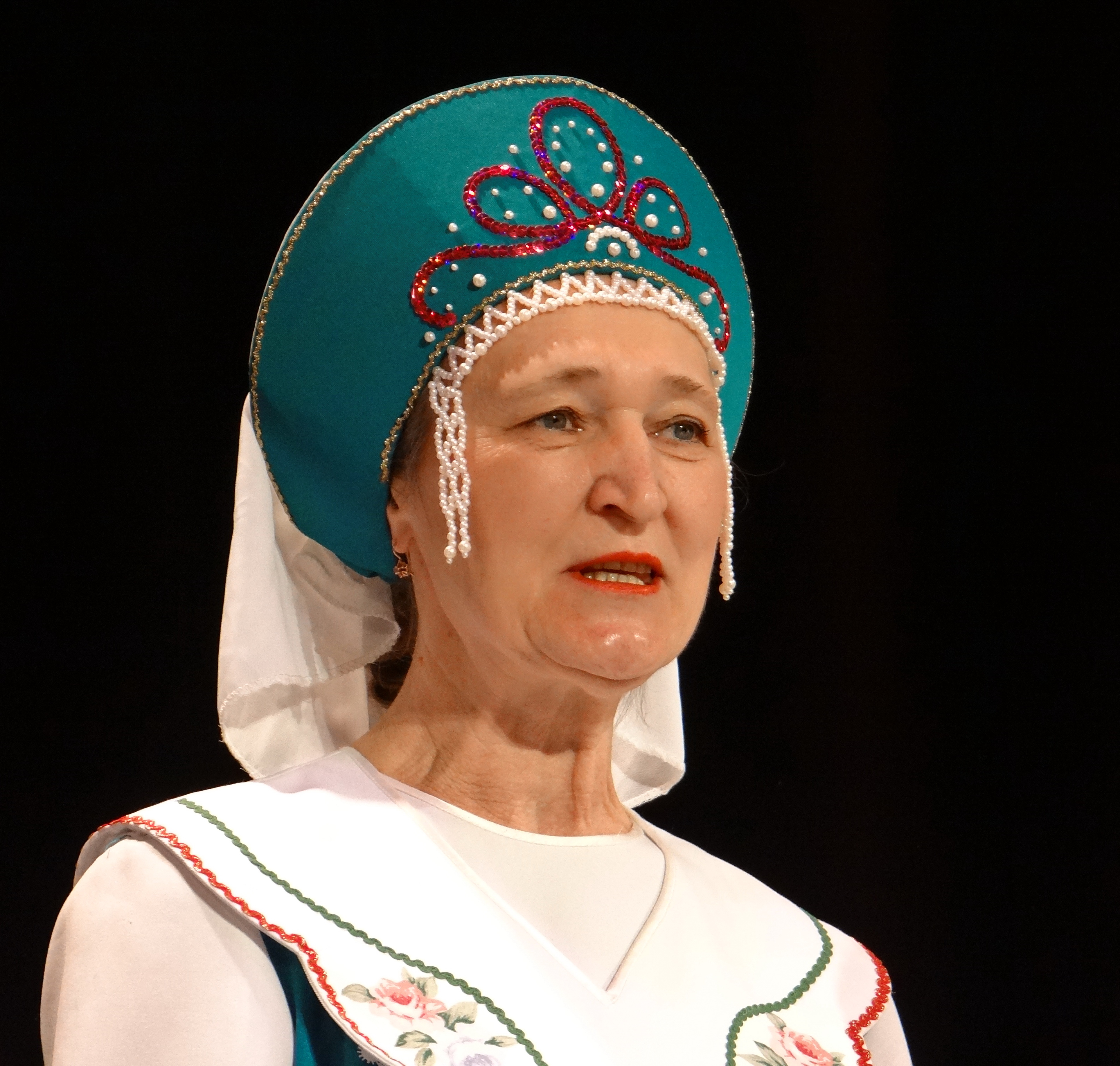 Точно сфокусировались на лице модели, оставили достаточно пространства по направлению взгляда. Удачно выбрали темный фон - цвета на нем почти всегда выглядят более насыщенными, в данном случае это хорошо.