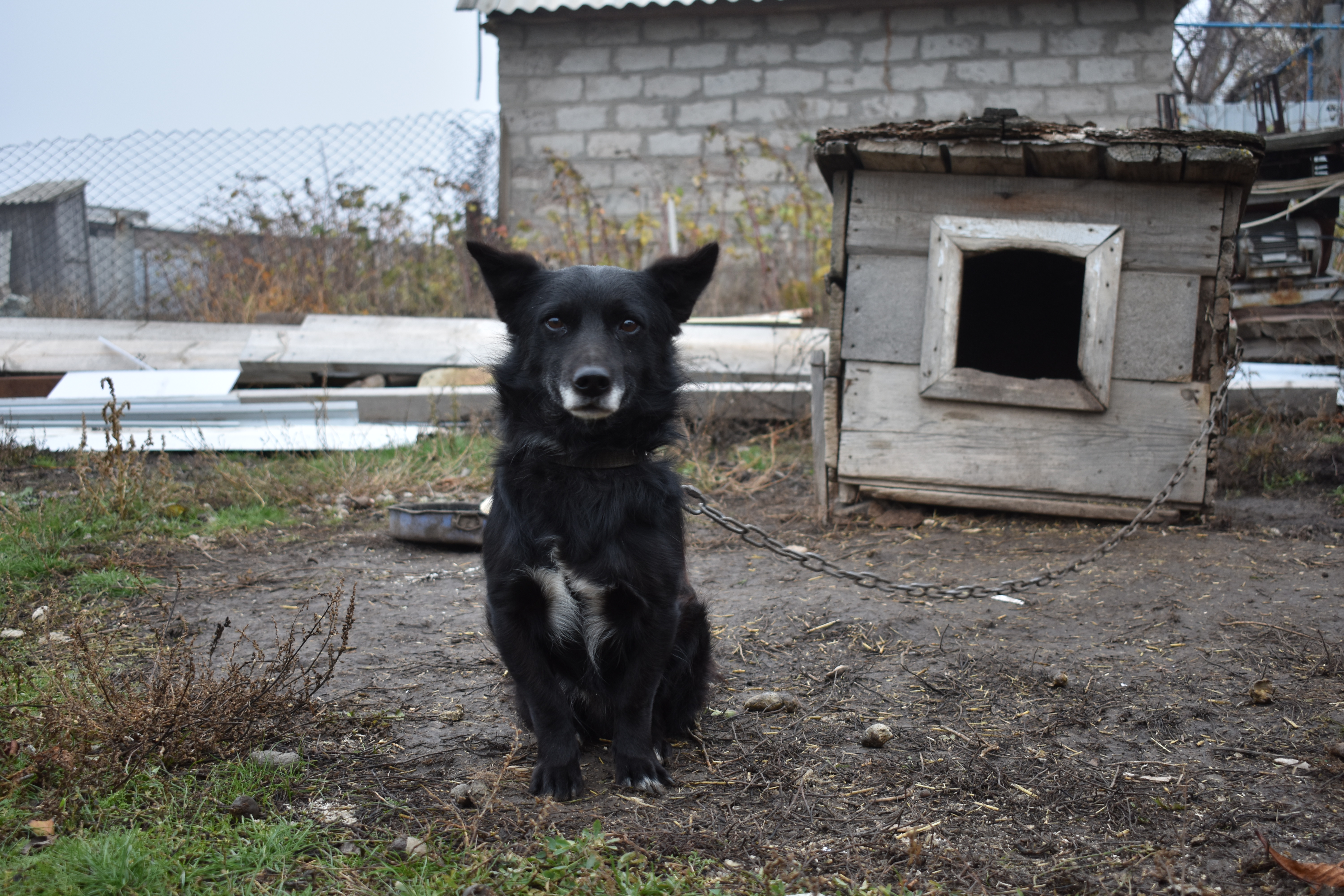 Получилось гармонично расположить собачку в окружающем пространстве. Будка и цепочка создают смысловой акцент.