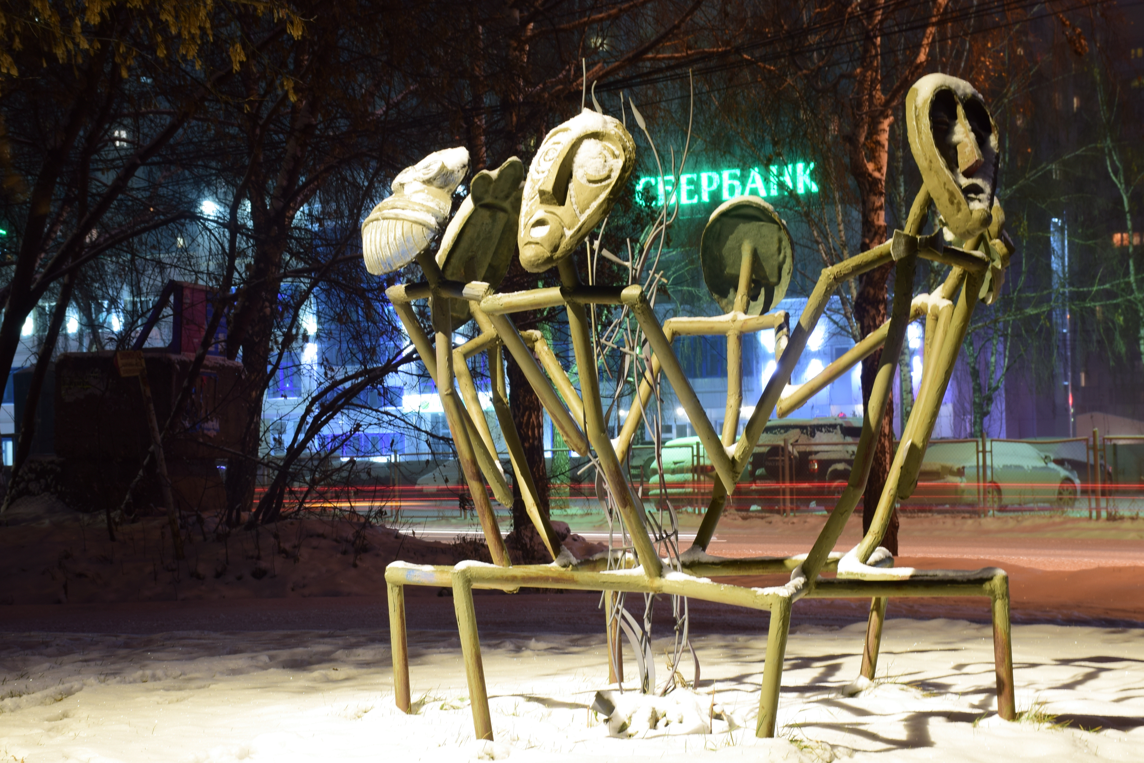 Яркие вывески в фоне отвлекают от фигуры . Хотелось бы выбрать такую точку съемки, в которой вывеска окажется за скульптурой.
