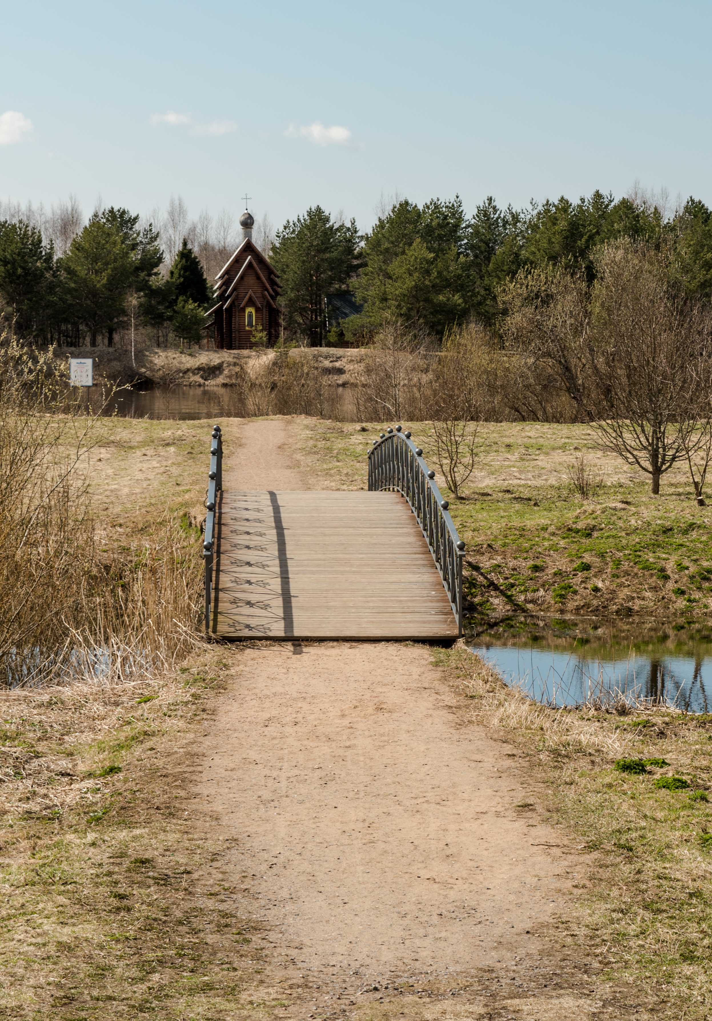 Неплохой снимок! Хорошо разместили часовню в кадре - дорожка задает движение для взгляда зрителя, подводя его к часовне на заднем плане. Хорошо разместили линию горизонта на снимке - оставив чуть меньше трети для неба. Дорожка усиливает линейную перспективу у снимка. Так же перила задают небольшой ритм. Неплохо освещение и резкость у снимка.