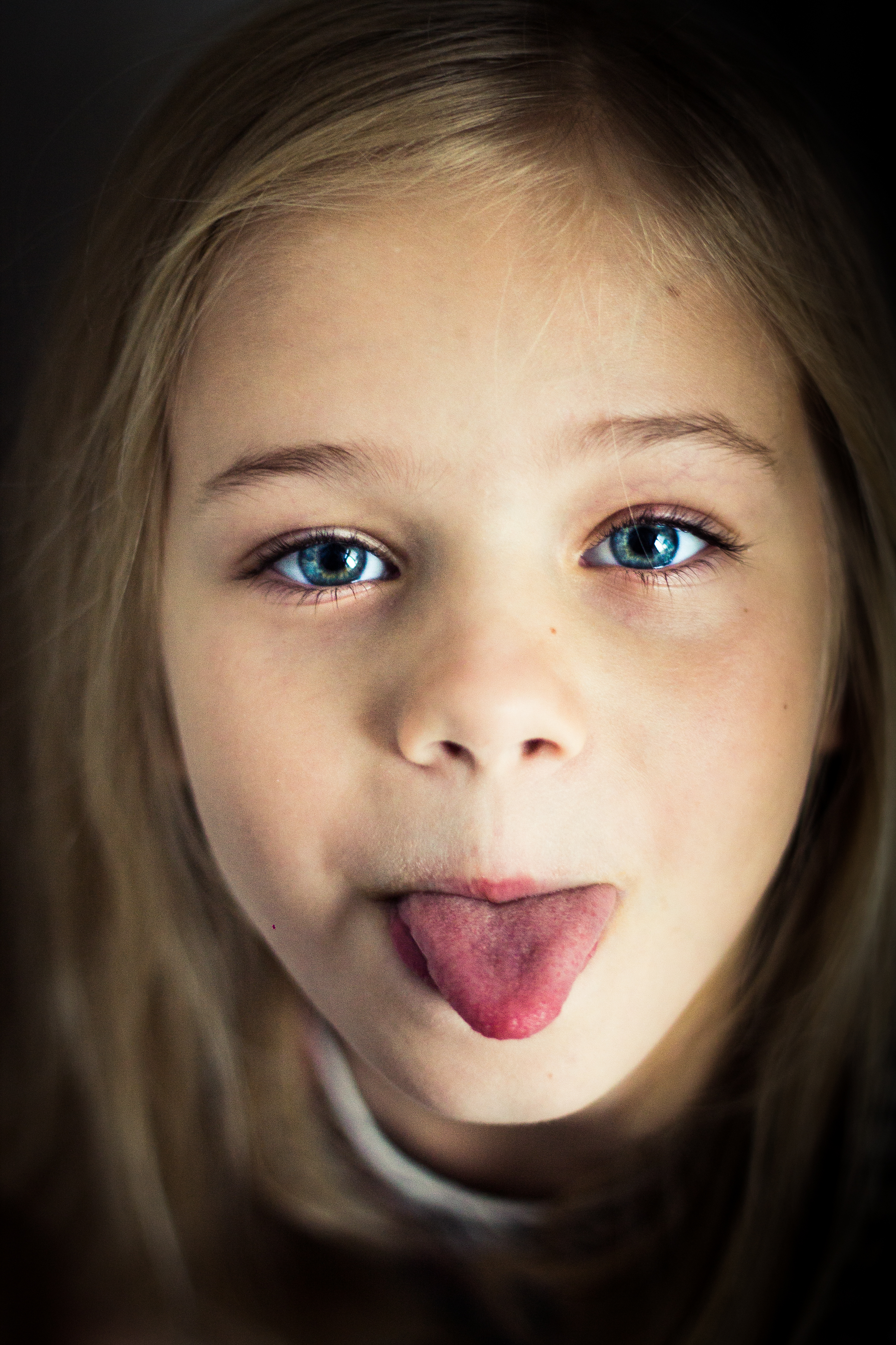 Съемка в помещении, естественный свет, отраженный от белой ткани. Хотелось сделать акцент на взгляд и показать игривое настроение девочки