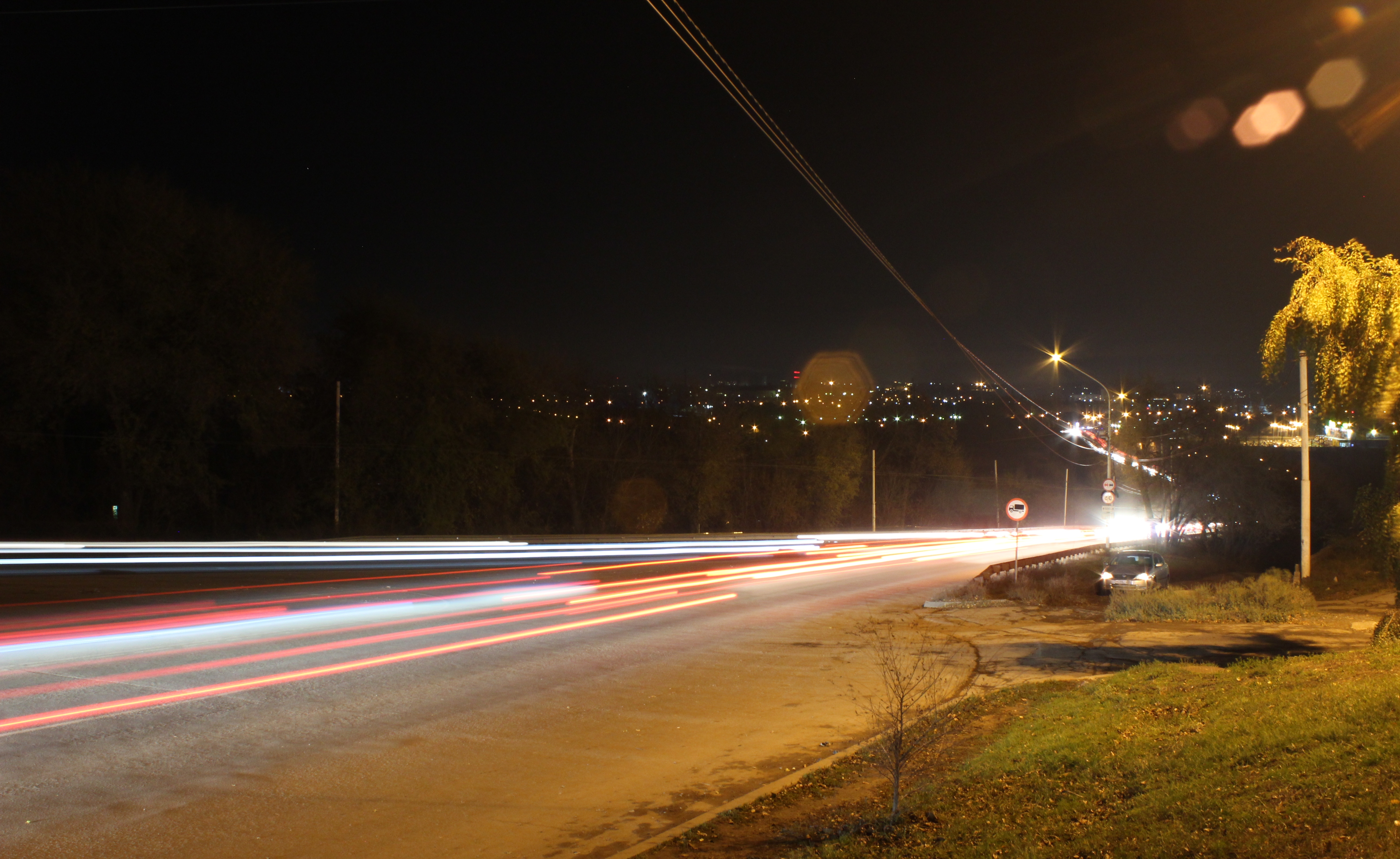 Неплохая работа! Выбрали более эффектный ракурс с дорогой, которая подчеркивает перспективу снимка и усиливает его глубину. Достаточно хорошая резкость и детализация - смаз отсутствует. Длинная выдержка позволила получить треки от фар проезжающего потока машин.