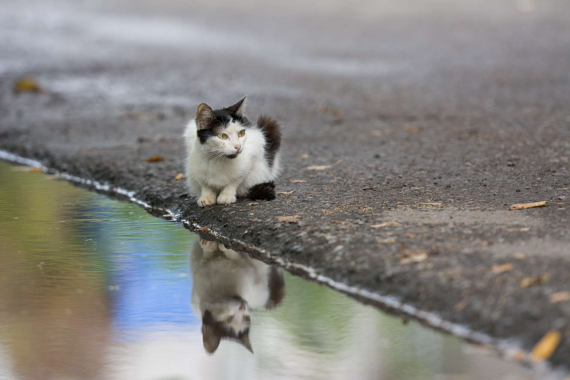 Очень милый портрет получился. Котика разместили в композиционно выгодном месте на линии третей. Фокусировка не подвела, резкость именно на мордочке. Красиво смотрятся отражения, открывающие перед зрителем новую плоскость и расширяющие пространство кадра. Отлично всё и по настройкам, короткая выдержка 1/320 позволила комфортно снять с рук.