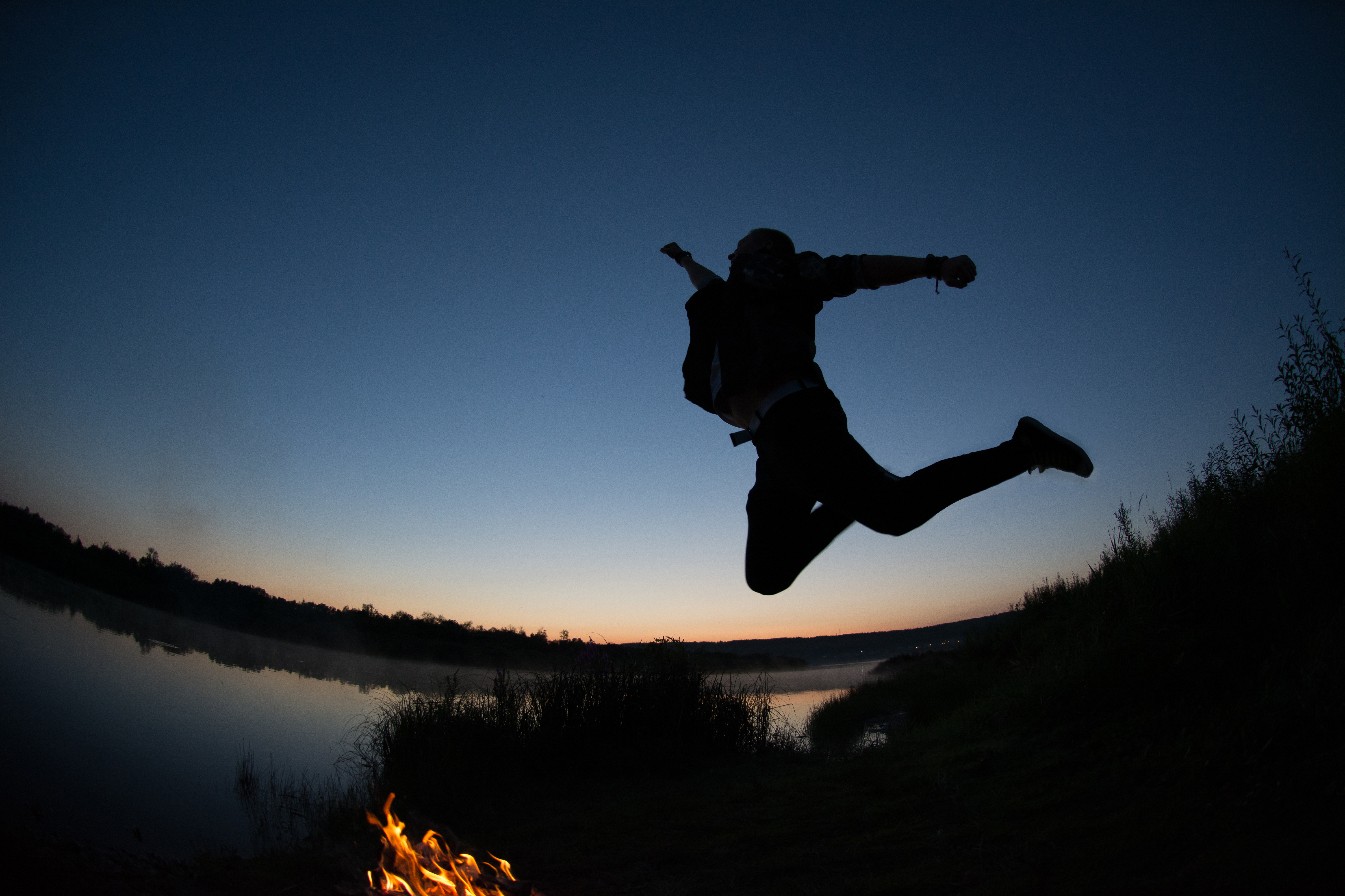 Силуэт человека в воздухе здорово выделяется на ярком фоне неба.
