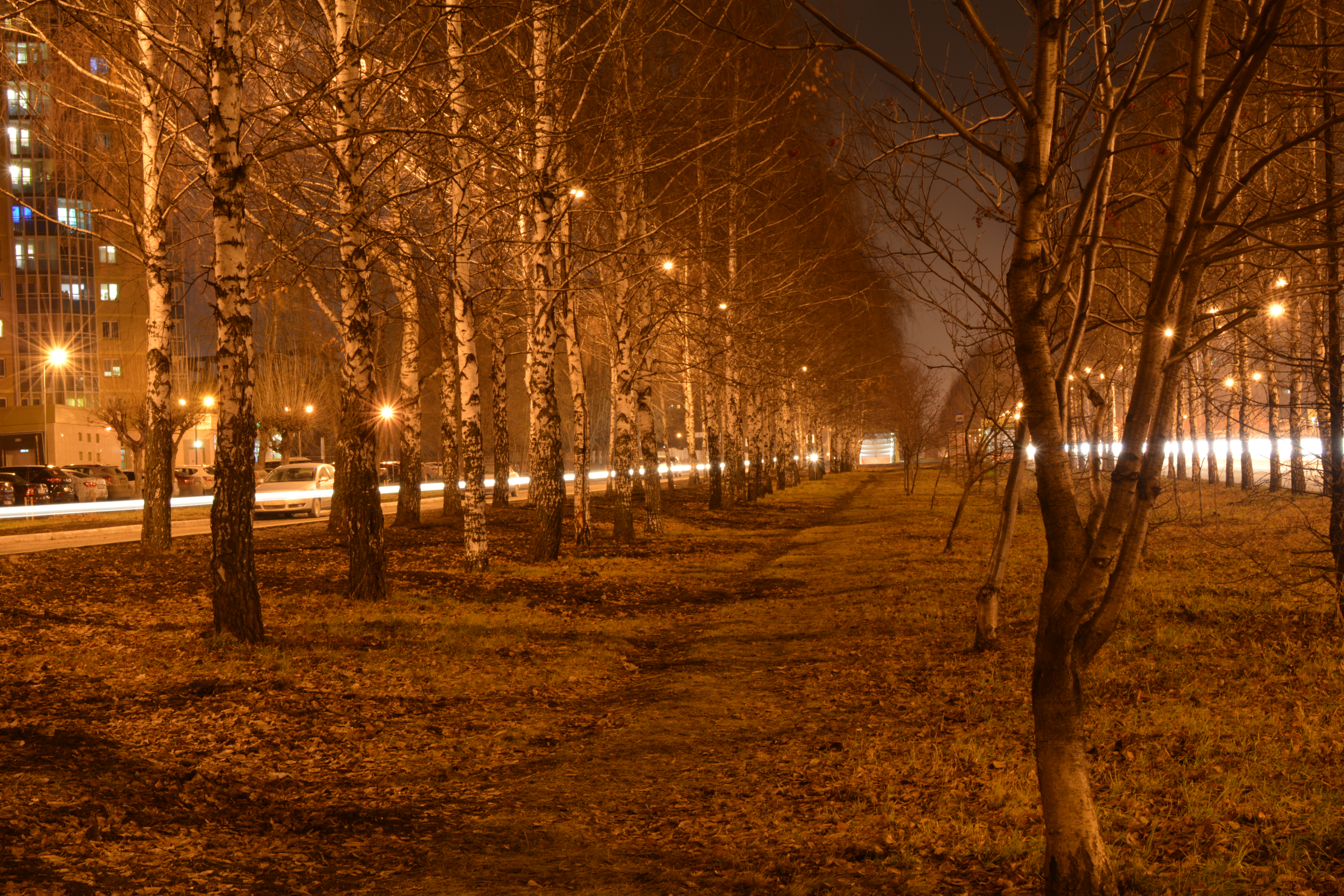 Хотелось бы расположить камеру ближе к дороге, не закрывать ее объектами, деревьями, заборами , выделить именно линии света на дороге, сделать их главными в композиции.