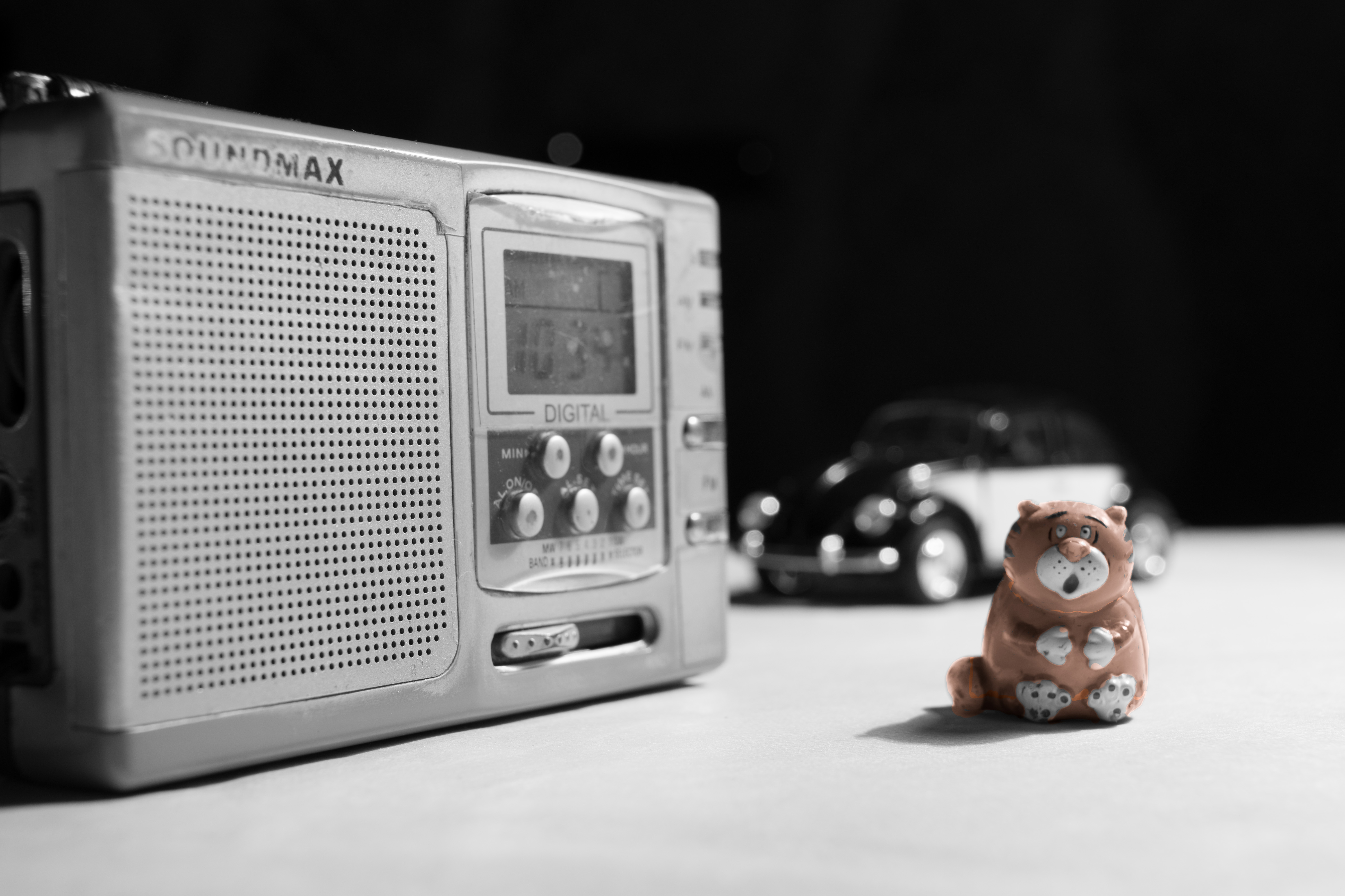 урок 1.раскрашиваем черно-белое изображение.перевёл исходный кадр в чёрно-белый.затем раскрасил котика с помощью корректирующей кисти,автомаски.(котик слушает радио).