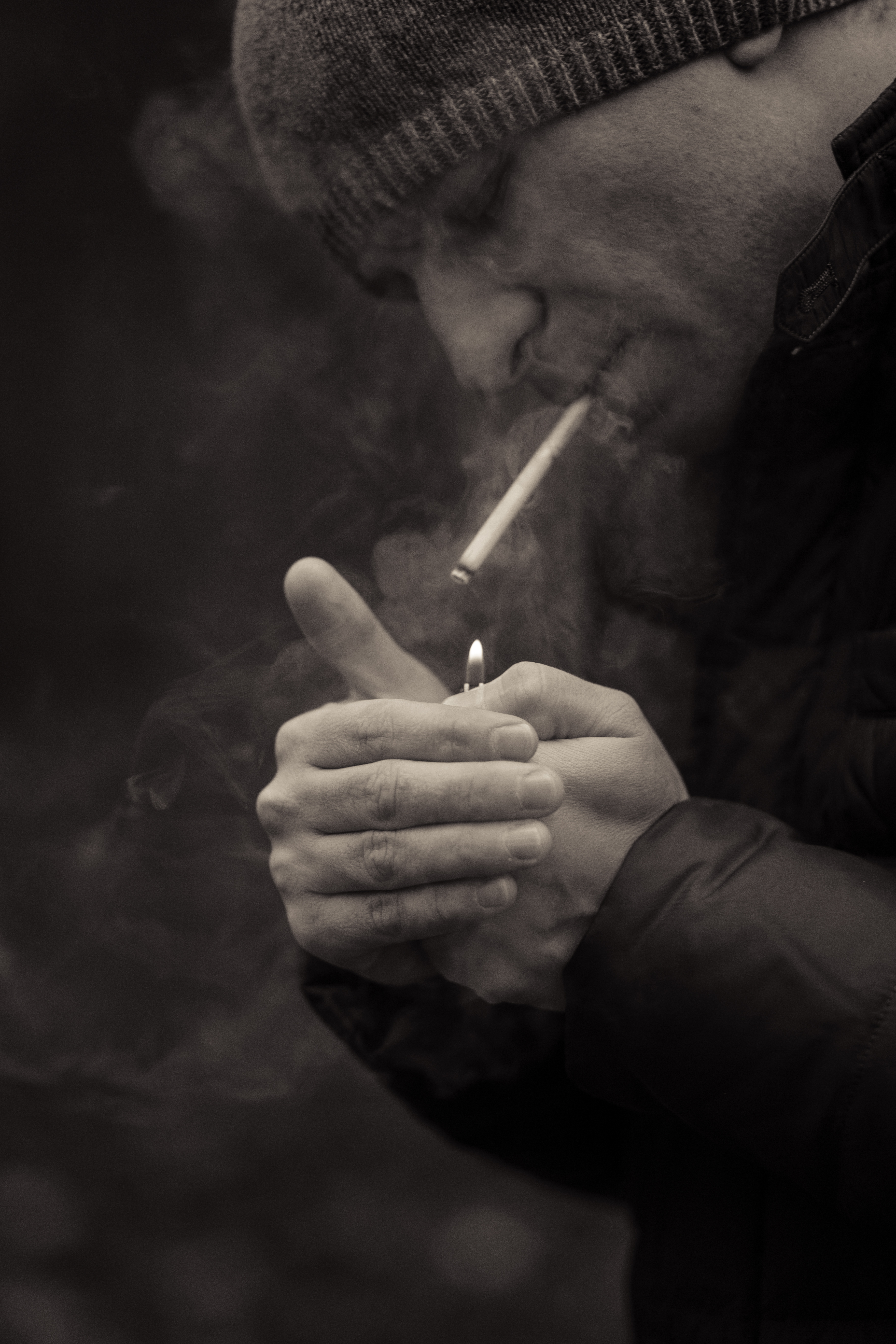 Добрый день! Курение - это, конечно, зло. Но очень хочется поймать кадр такого типа. Фокус получился на руках и огне, лицо немного в размытии. Интересно услышать Ваше мнение. Спасибо.