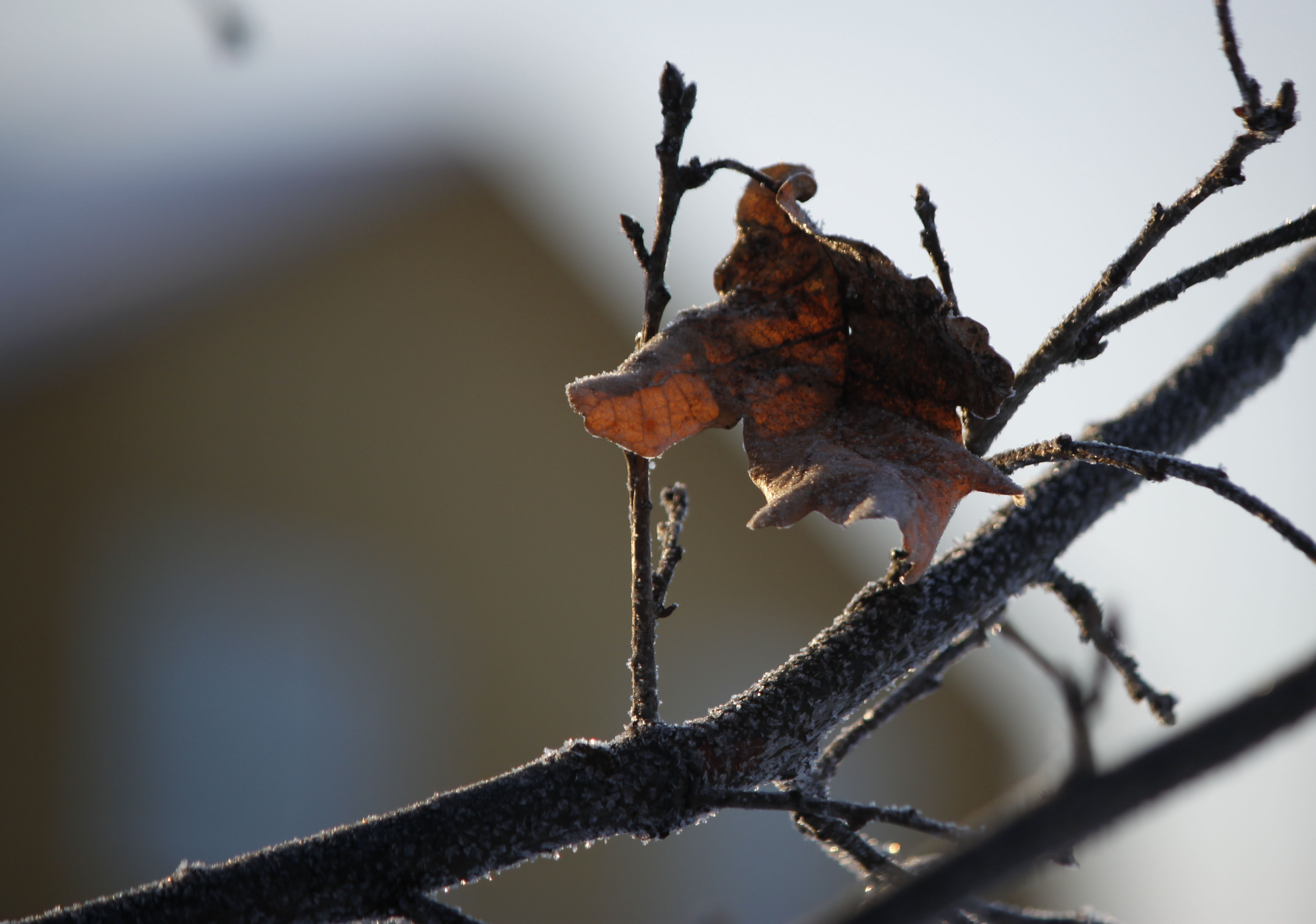 В данном сюжете резкость более звонкая и она именно на объекте съёмке. Съёмка телевиком позволила добиться малой глубину резкости и выделить листочек в кадре. Фон при этом красиво уведён в нерезкость и совершенно не отвлекает. Веточка выгодно размещена на восходящей диагонали, движение взгляда по такой линии более быстрое и лёгкое. Исо минимальное, шумов нет. Выдержка 1/250 отлично заморозила момент. Сюда бы поместить птичку, было бы просто замечательно!