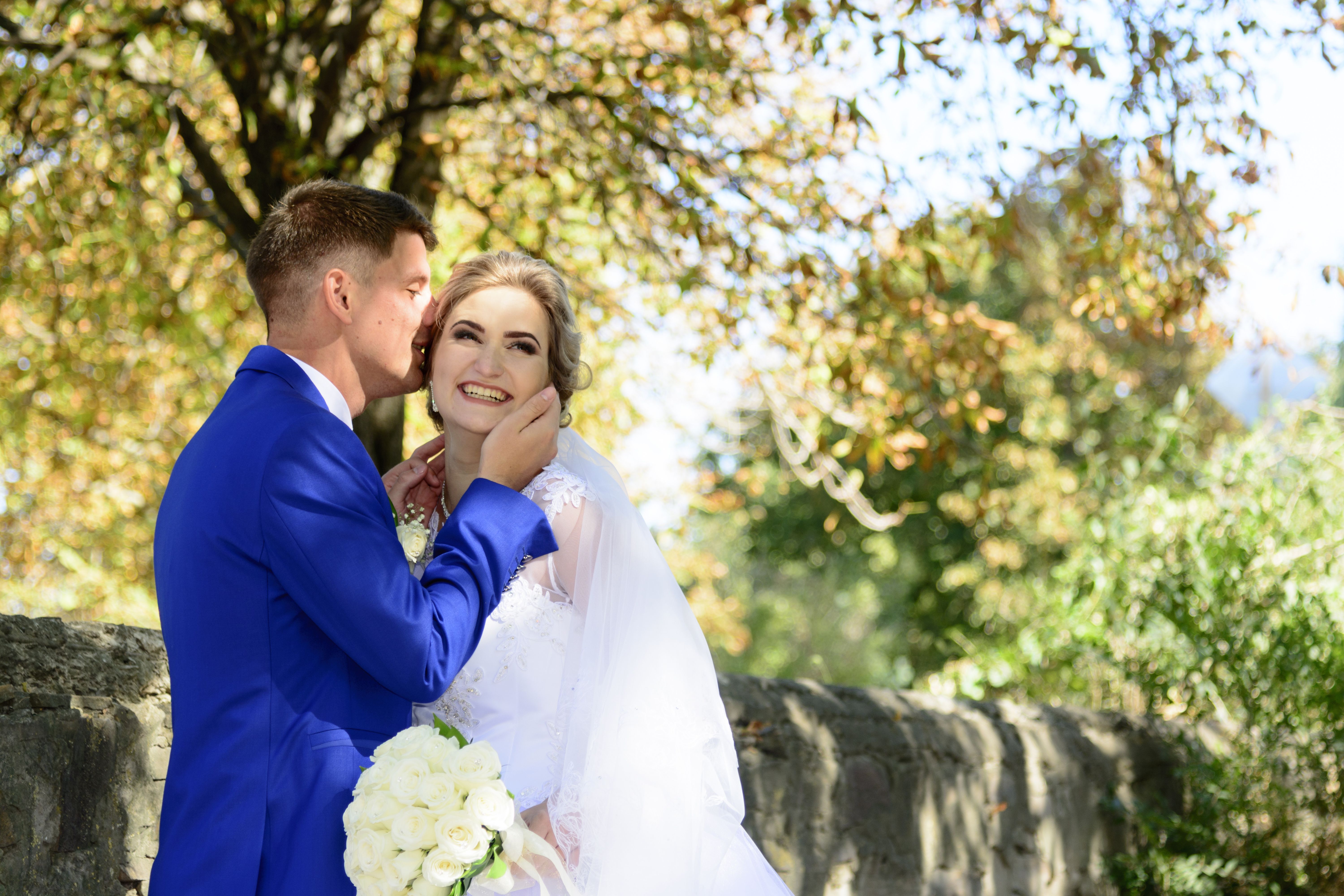 В представленном кадре более явно заметны эмоции жениха и невесты. Снимок не выглядит постановочным, уловлен момент из жизни и это здорово! По настройкам всё здорово, выставлены они корректно и пересветы в данном случае не смотрятся критично. Световые пятна распределены и на лице невесты и на лице жениха, так что такая равномерность не перетягивает внимание зрителя на какого-либо героя. По компоновке - удачно разметили пару на линии третей.