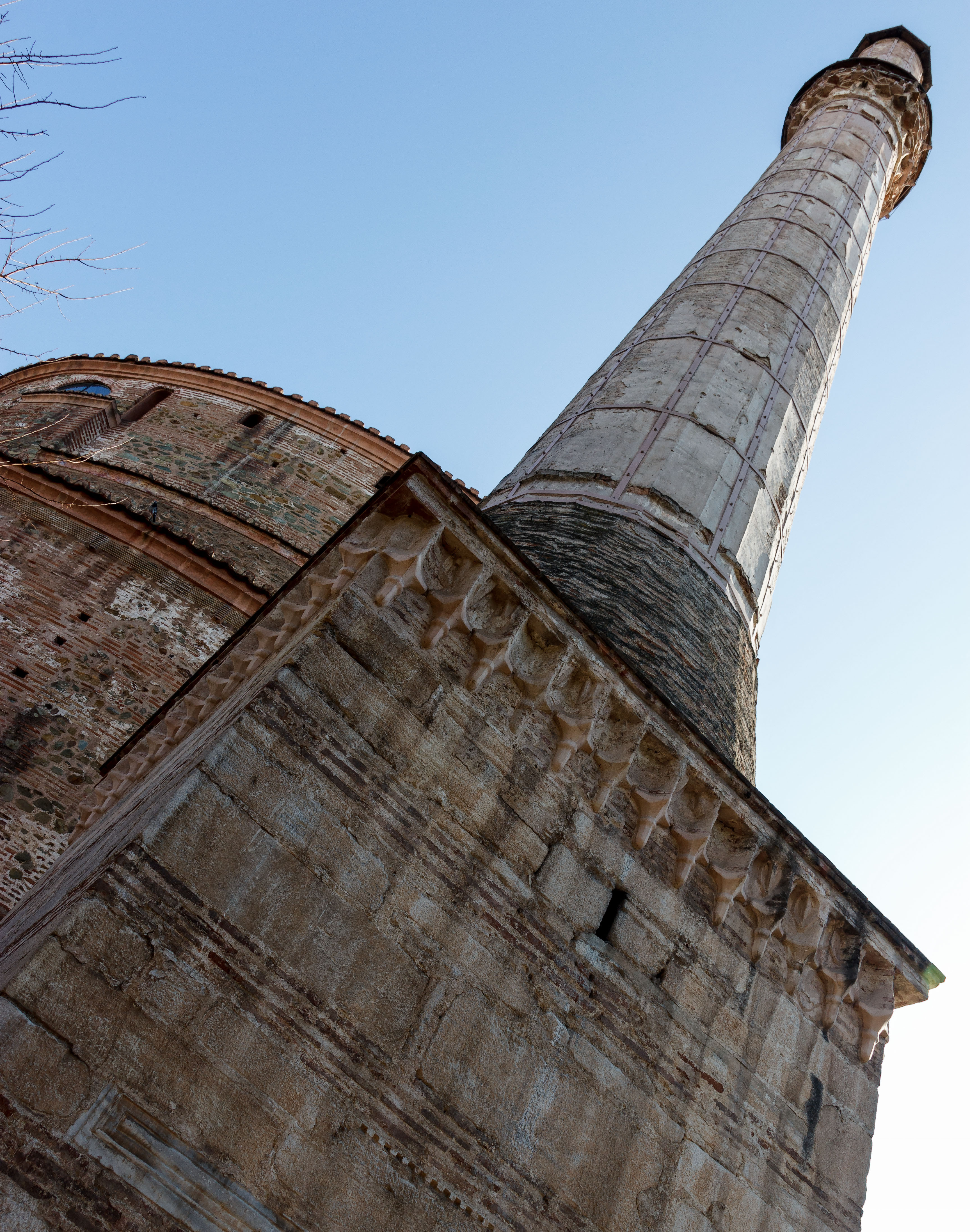 Интересная композиция- благодаря короткому фокусному расстоянию удалось вместить в кадр вертикальной ориентации всё сооружение- и точка съемки была выбрана таким образом, чтобы при наклоне весь минарет был в границах снимка и в результате получилась глубина пространства.