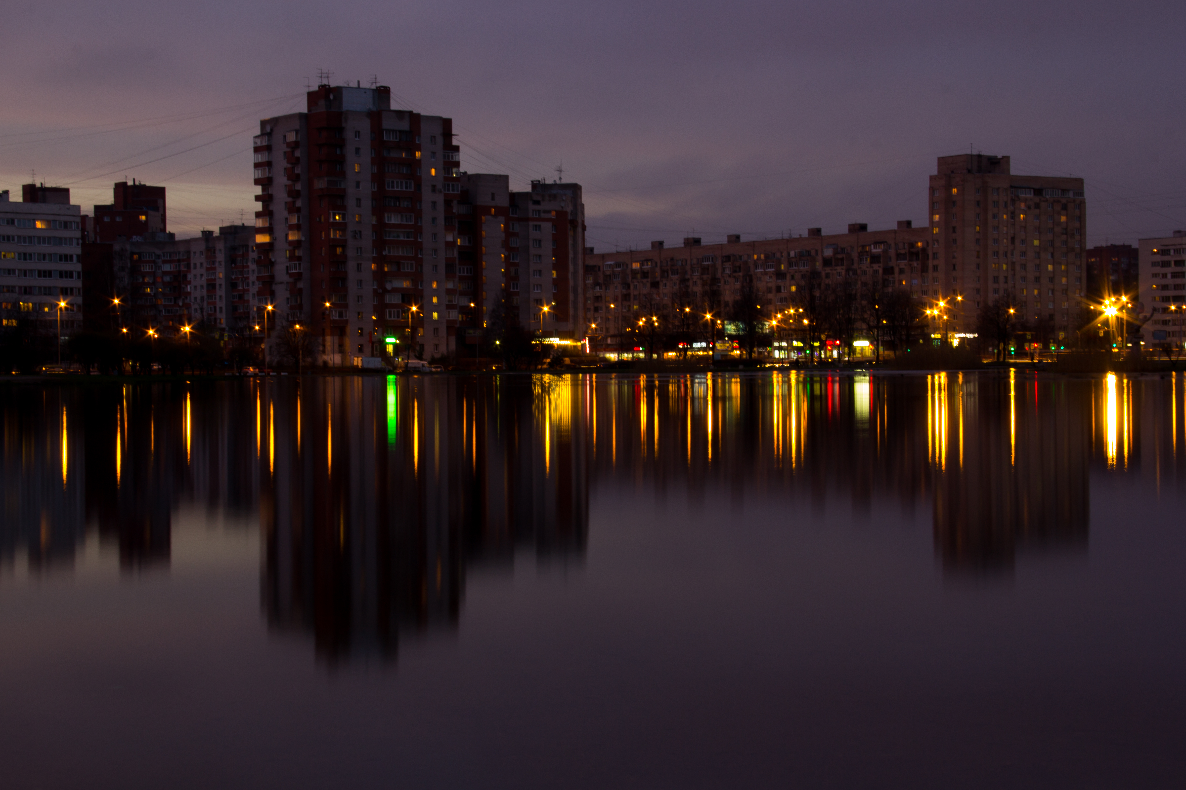 Диафрагму зажал сильно, для лучшей детализации домов. iso тоже минимальна для лучшей проработки. Выдержка очень длинная - 10 сек (конечно, со штатива), небо не очень тёмное, но при большем затемнении пропадают силуэты домов и теряется красота снимка.