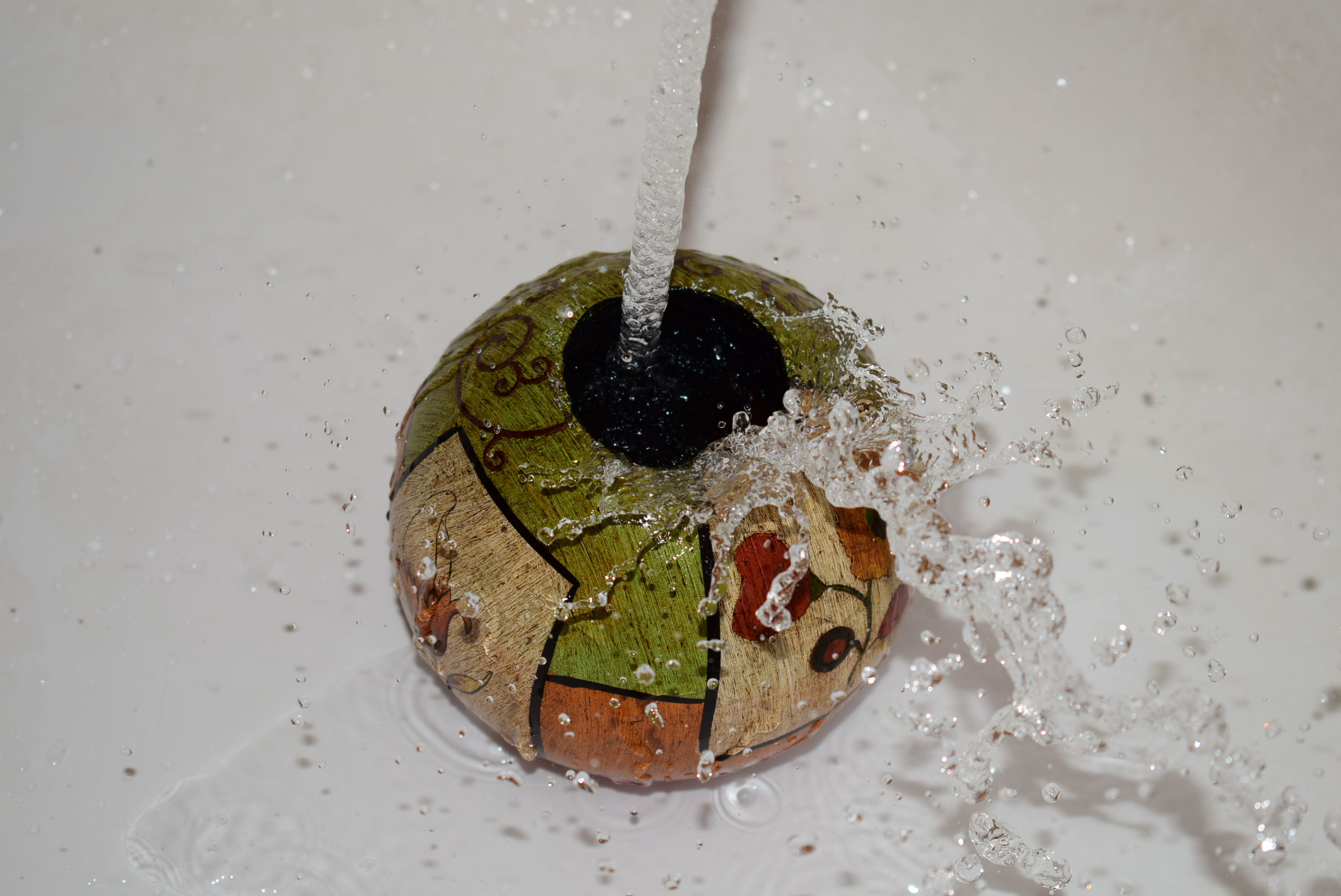 Отлично справились! Короткая выдержка 1/100 замечательно заморозила момент и помогла избежать смаза. Брызги буквально, застыли в воздухе. Яркий объект в центре кадра удачно привлекает и акцентирует внимание зрителя, без него сюжет смотрелся бы совсем плоско.