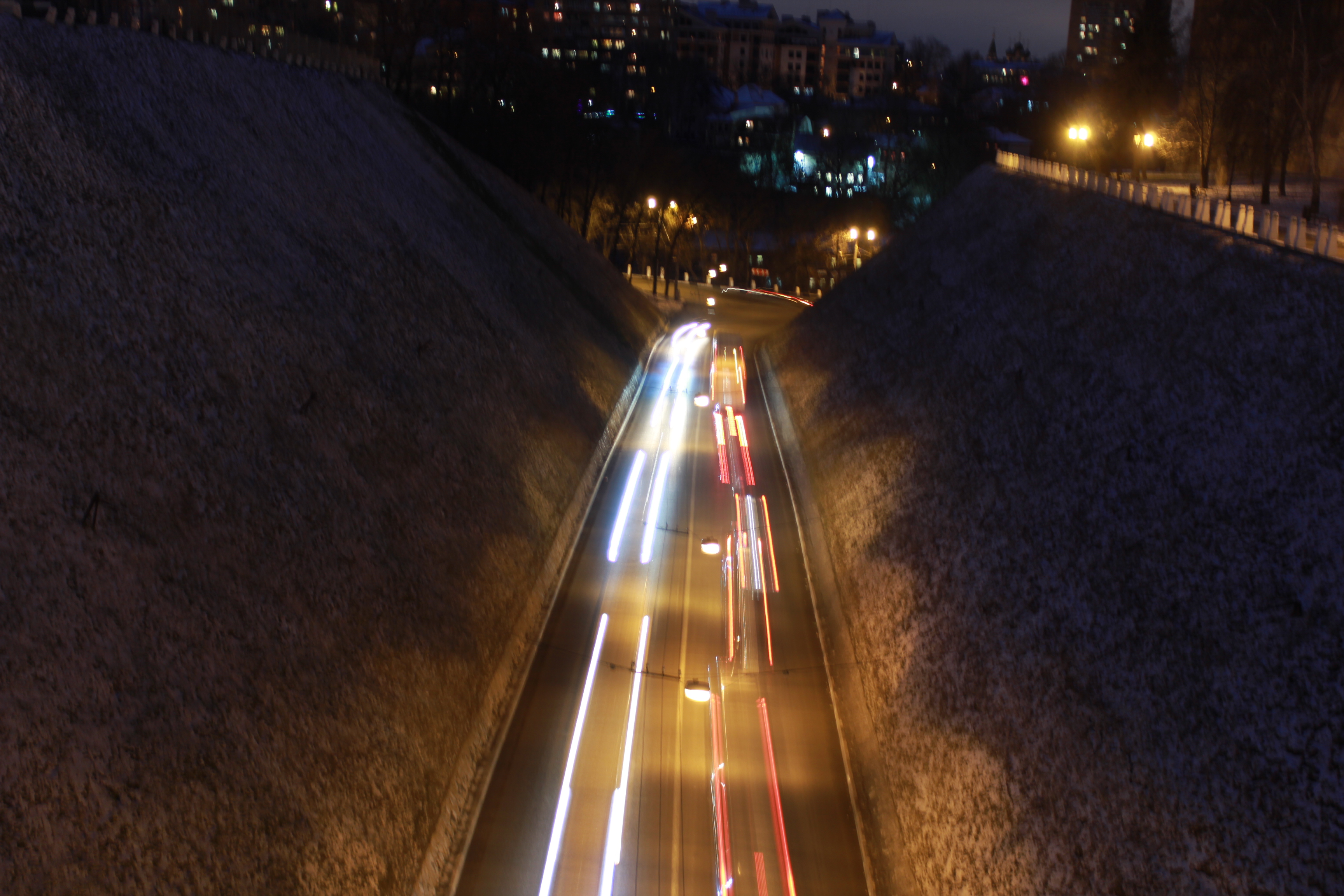 Хорошая работа! Удачно настроена выдержка, хорошо получилось запечатлеть дорогу в движении. Так же хорошо вышло зафиксировать камеру, ничего кроме машин не смазано, дорога в резкости.