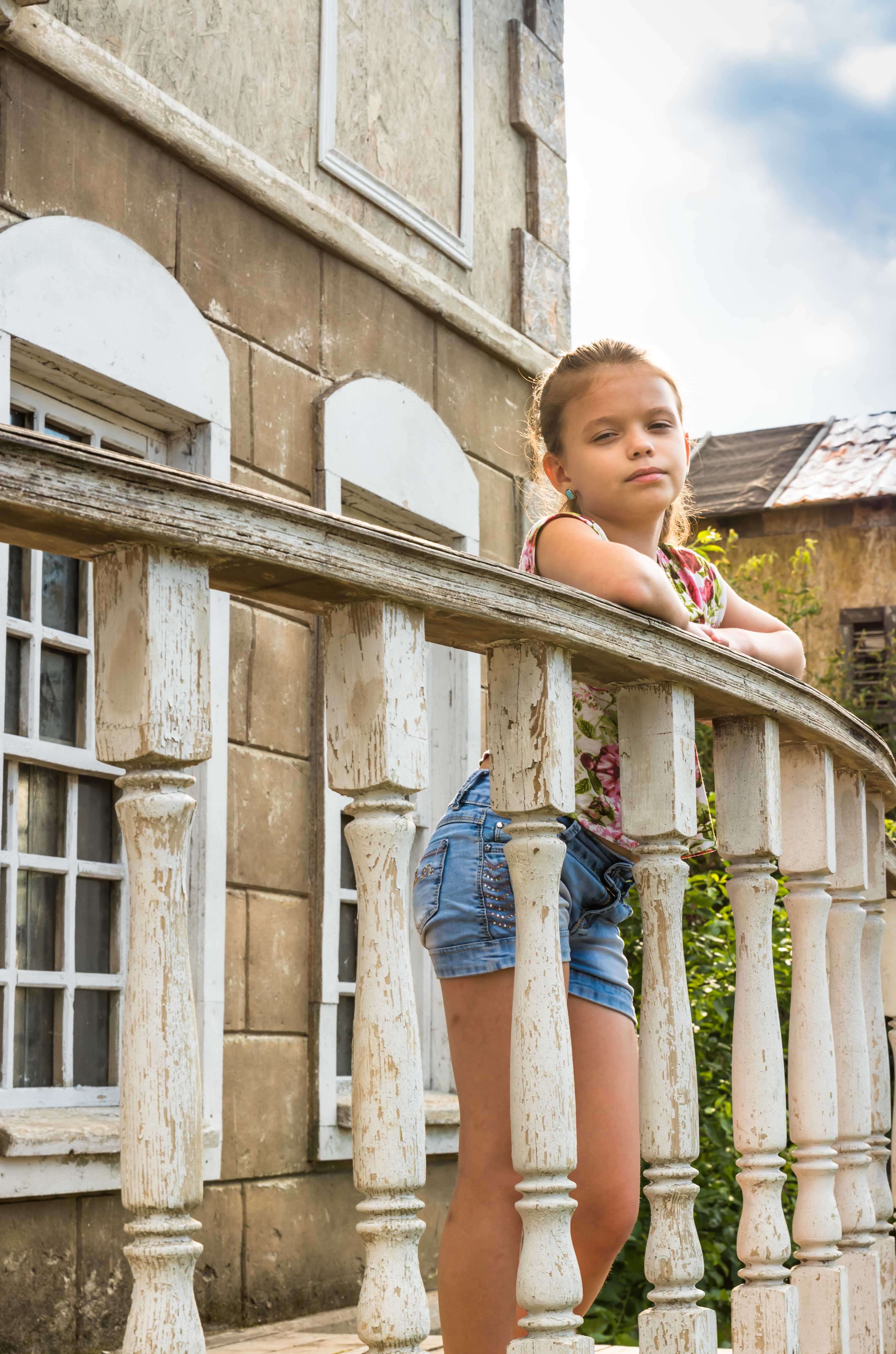 Очень хороший снимок у Вас получился. Нравится композиция кадра, его компоновка.Цвета в кадре естественные, не искаженные, свет распределен соответственно съемочным условиям, все тени оправданы. Удачная так же точка съемки Хорошо получилось передать эмоцию модели. На счет ритма через вертикали перил- соглашусь. Отличный контровой свет!