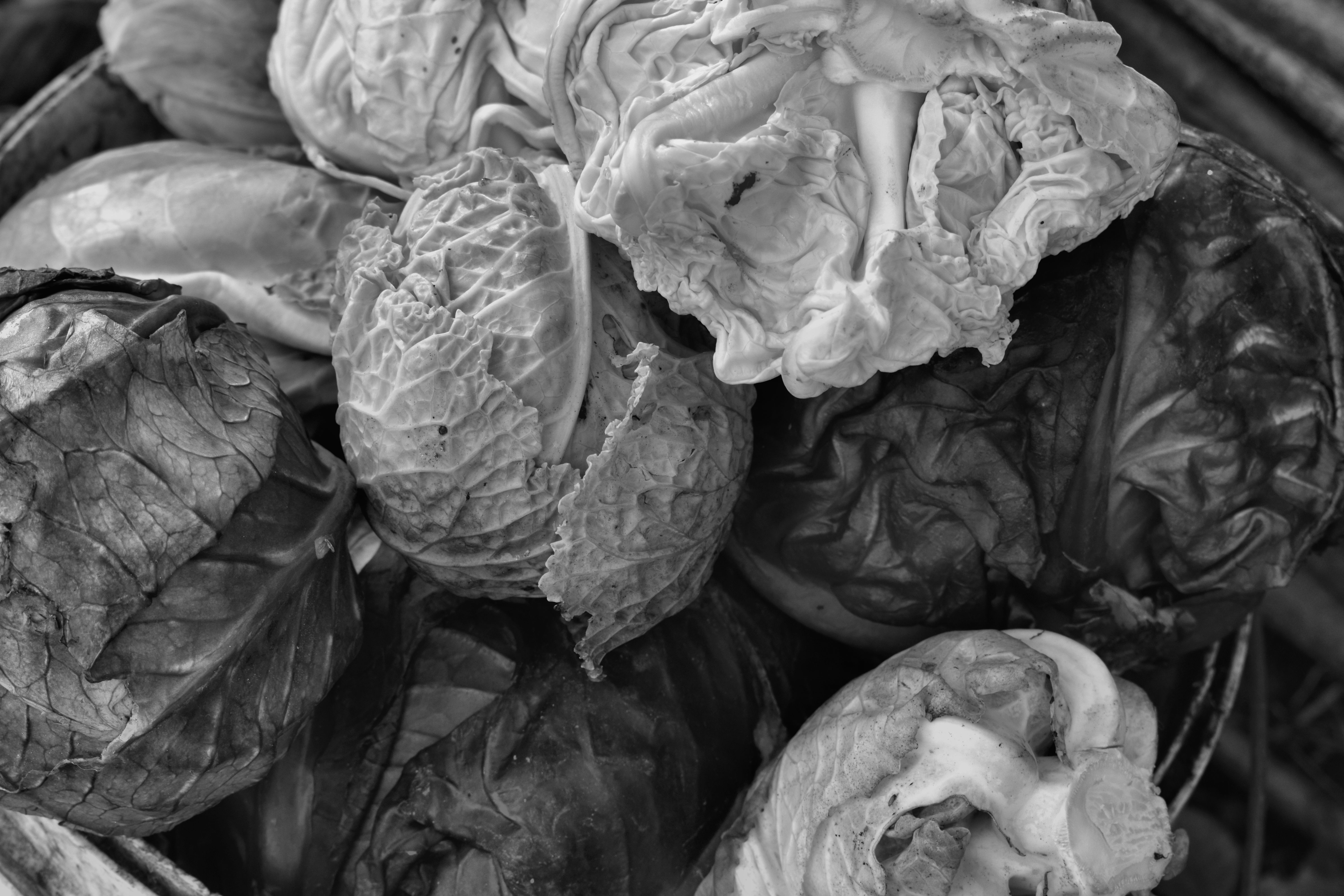 С одной стороны, достаточно простой сюжет. С другой стороны, когда я убрала цвет, получилось подчеркнуть линии капустных листьев, форму кочанов. Диафрагма прикрыта, чтобы взять в фокус больше объектов. Черно-белый цвет добавила уже в постобработке.
