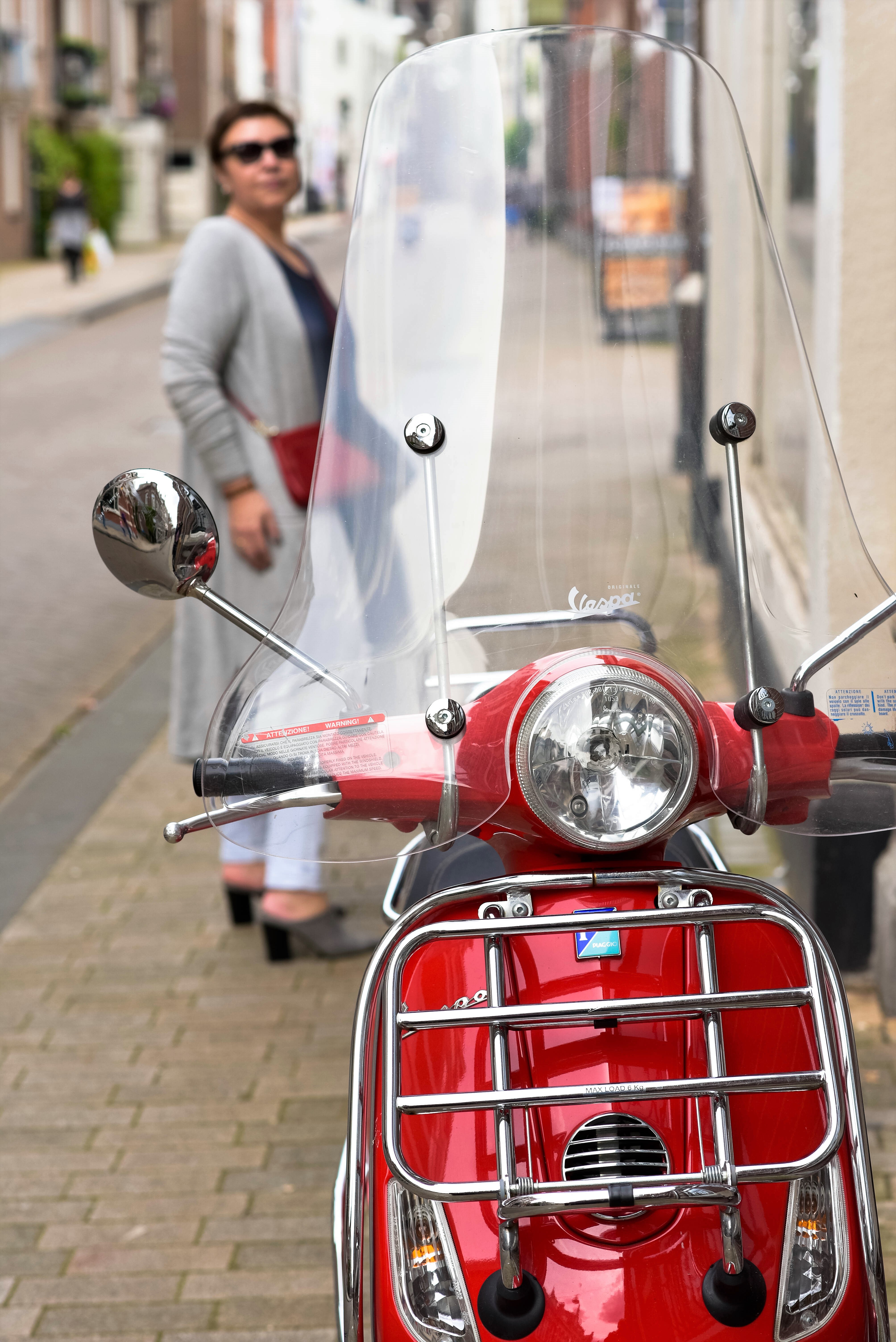 Это портрет моей супруги,а не мотороллера :) сделанный во время прогулки. Размытое изображение модели контрастирует с мотороллером на переднем плане. Снимок понравился самой модели своей оригинальностью.