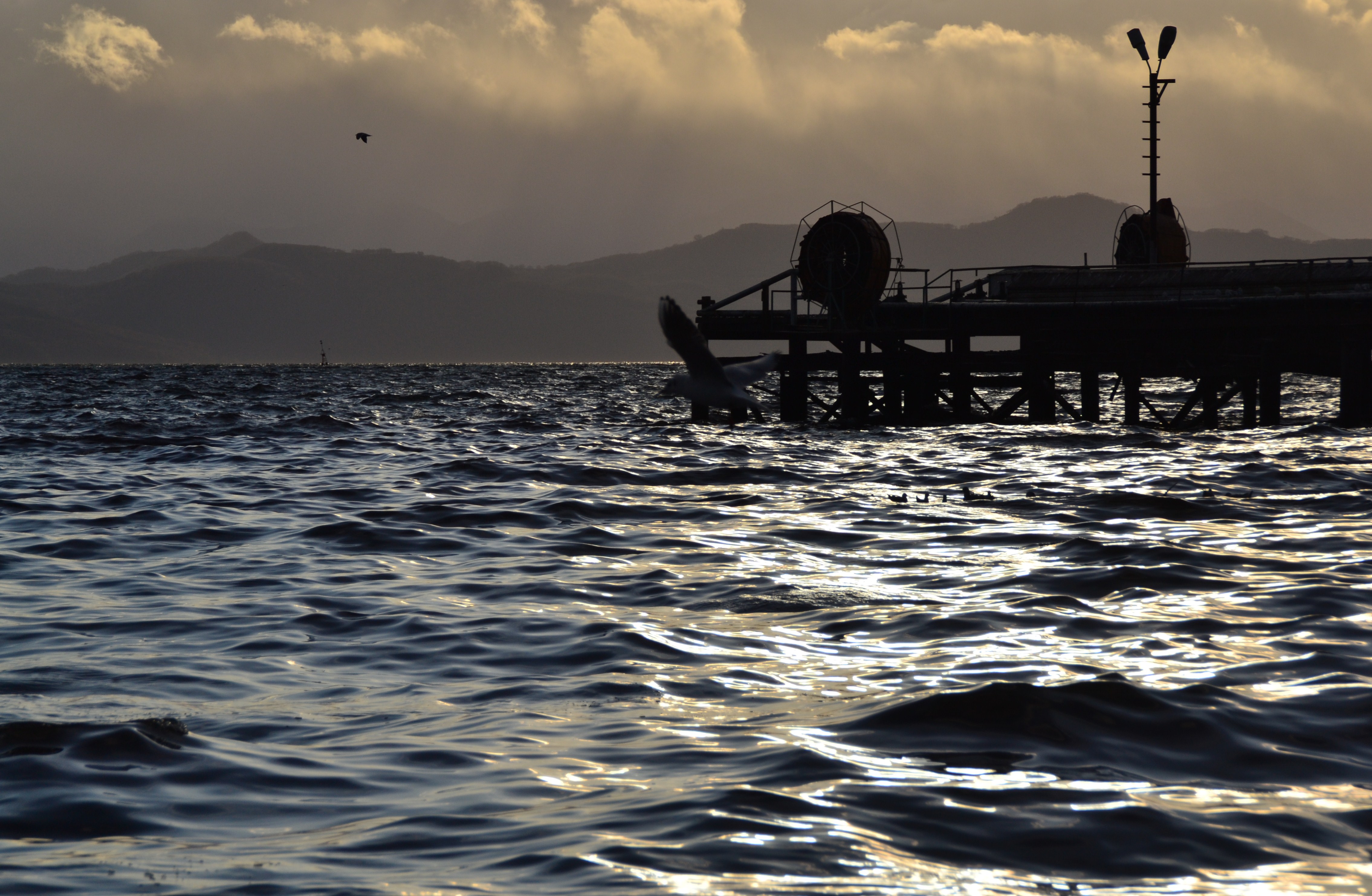 Освещение контровое , прорисована каждая волна на поверхности воды.