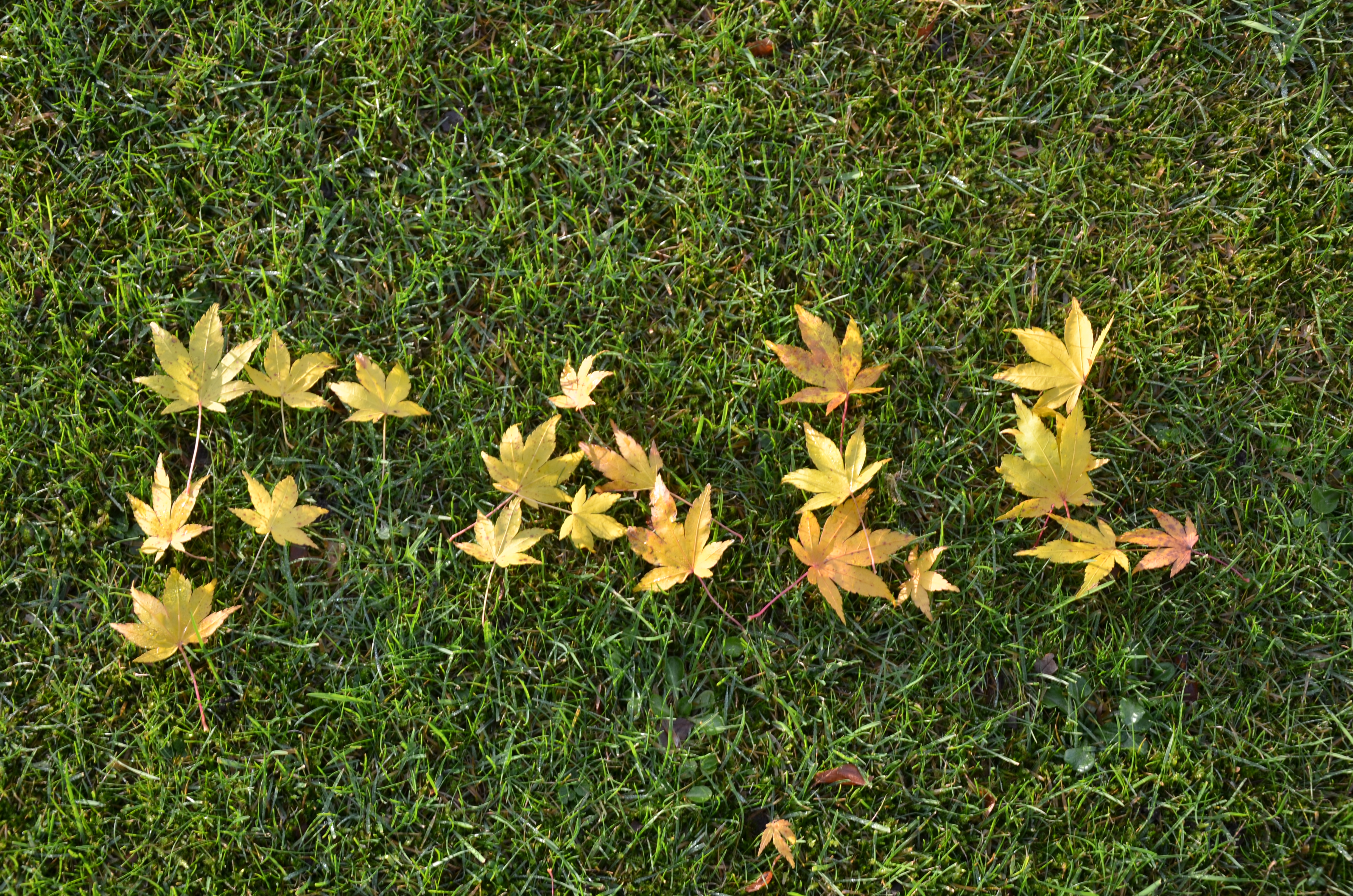 Неплохая работа! Интересно подошли к заданию, использовав в качестве фона газон и точку съемки 90 градусов к плоскости. Листья хорошо выделяются за счет цвета на зеленом фоне - надпись неплохо читается.