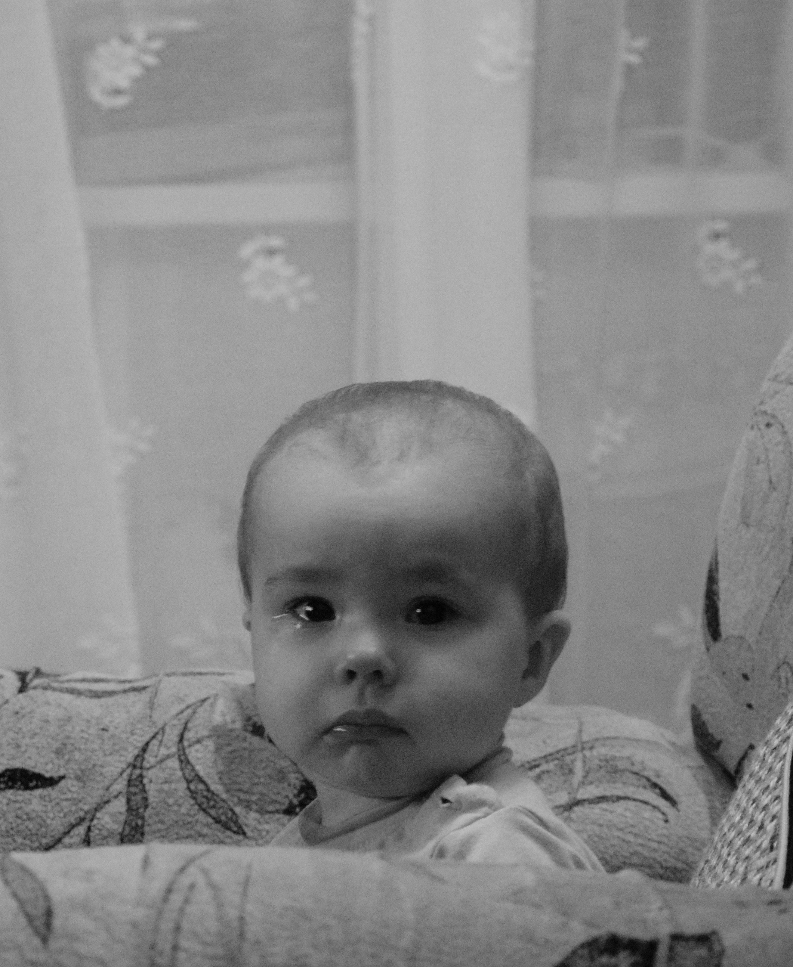 Малышка находится в кресле , оно создает ощущение тесного пространства с бокового ракурса.